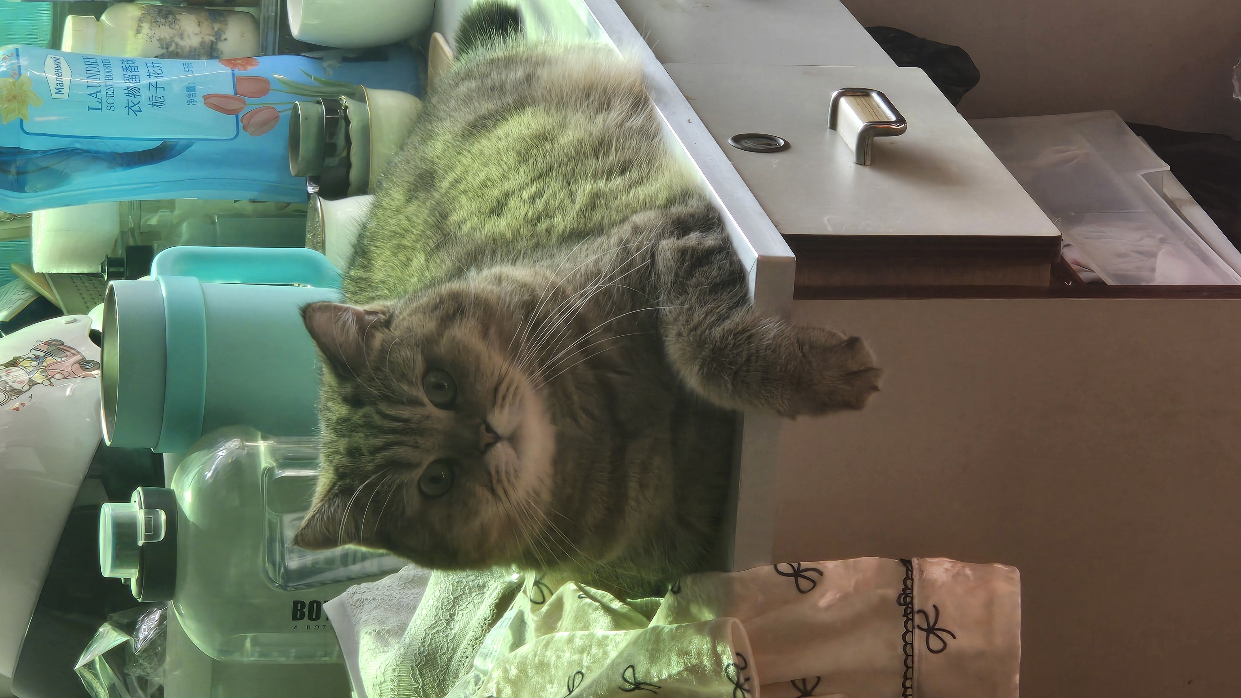 店里的男友拍了照,她好像喝了酒指挥男友给煮粉。