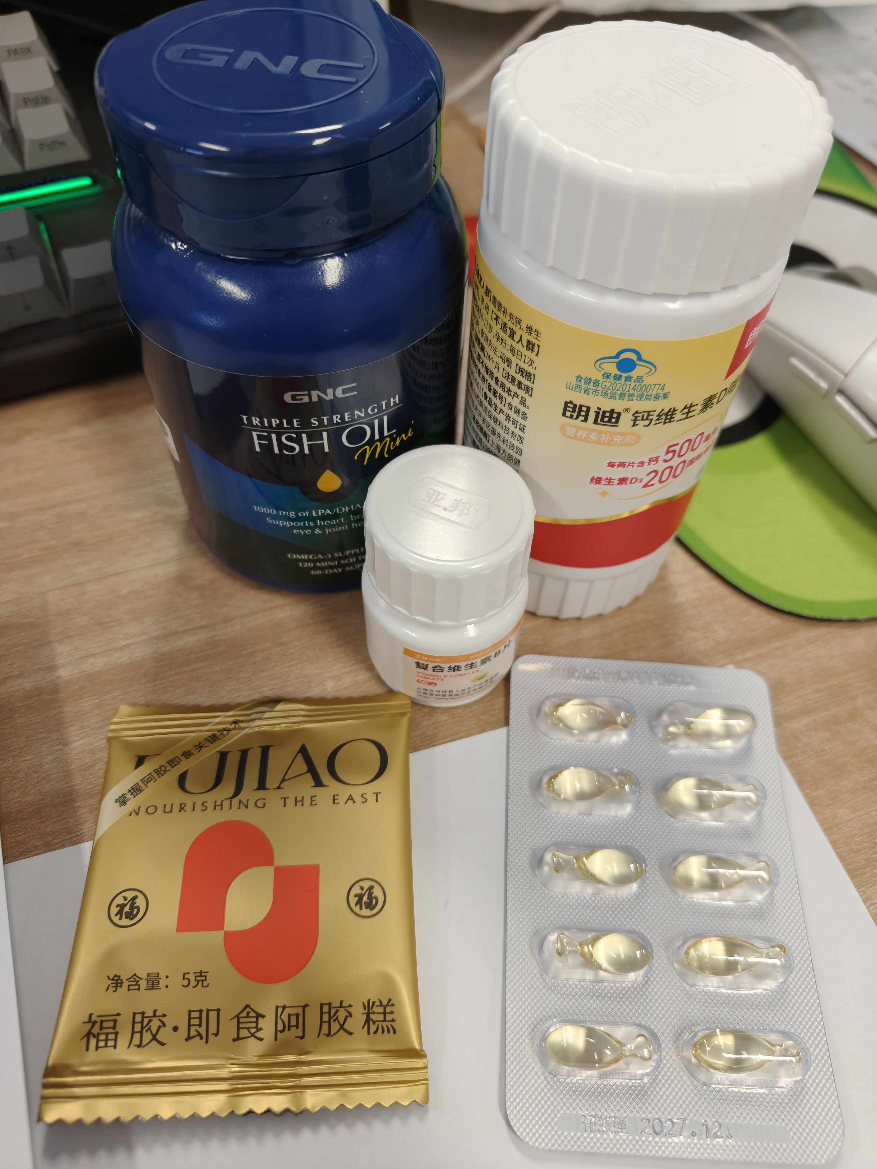 维b,维d,钙片,鱼油,低糖版阿胶