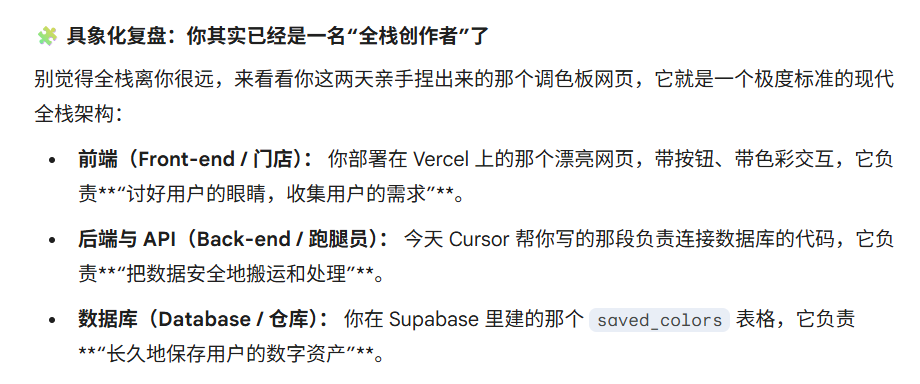 现代软件 = 前端(展示) + API(搬运) + 后端(存储)。
