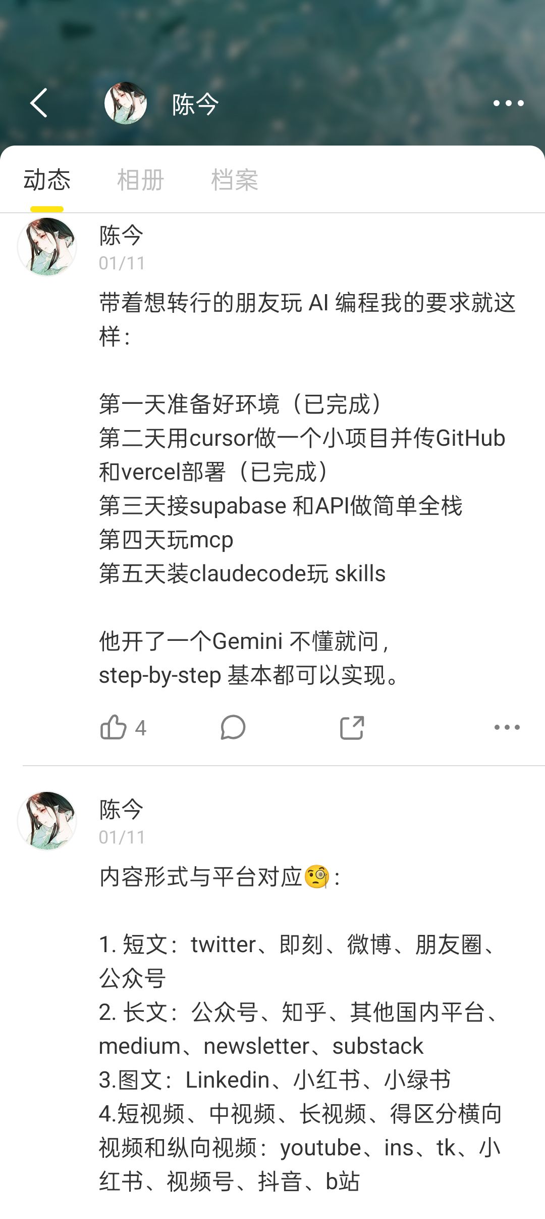 2目前的成果太少,我还有很多没实现的想法,如果把<不完美>的作品传上去,展现出来的不是理想自我,我觉得会得不到认可。