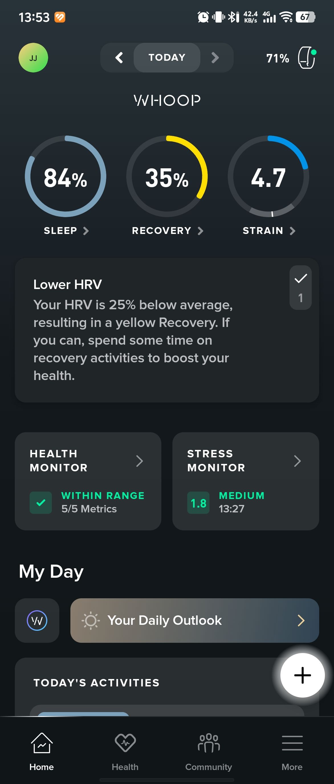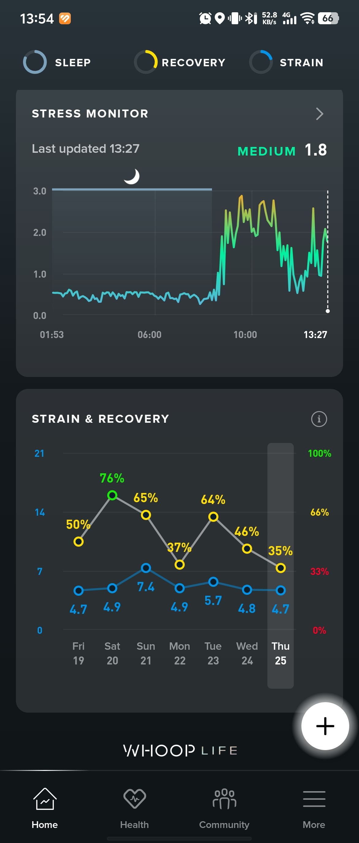 Whoop 5.0 用了一个月,体验还是不错的,作为个人健康管理的数据记录,基本能做到全流程不断链(除了洗澡),对于静息心率和焦虑指标的检测有一定意义,提醒也很直接,比如控制每日入睡和起床时间的波动在半小时内,减少吃夜宵等。产品很不错,功能不太符合国人小白用户,年费太贵。
