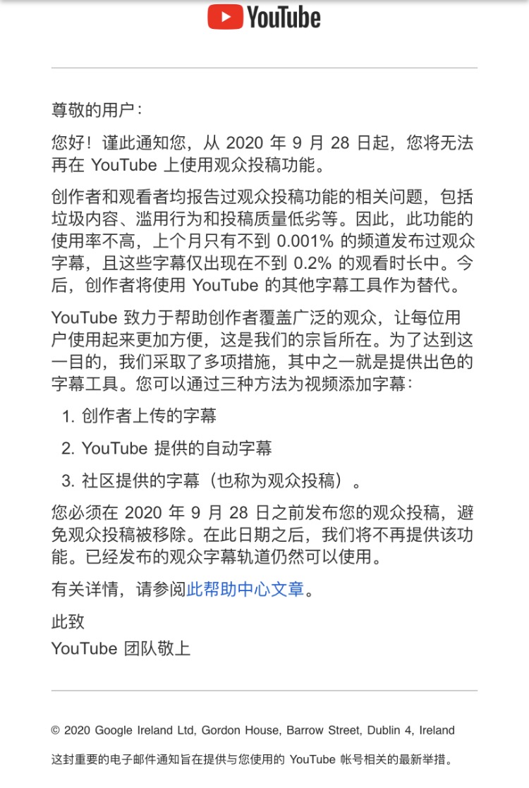 以后不能在油管上传字幕了