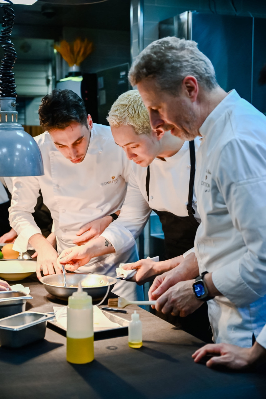 五年前我刚刚加入Da Vittorio Shanghai的时候,有一道鲷鱼特别受客人喜欢,那时候他们说是在贝加莫的总店一位日本厨师创造出来的,我那个时候想,如果有一天我也可以做一道菜被DV选到菜单上该有多好啊。后来时间过了很久,得到了公司的机会可以来贝加莫进修,我也完成了一道属于我自己的作品