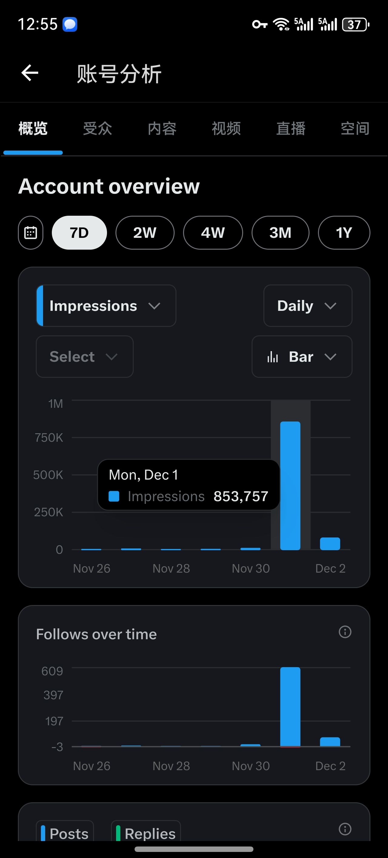 最近两周在 X 上涨了 3k 粉