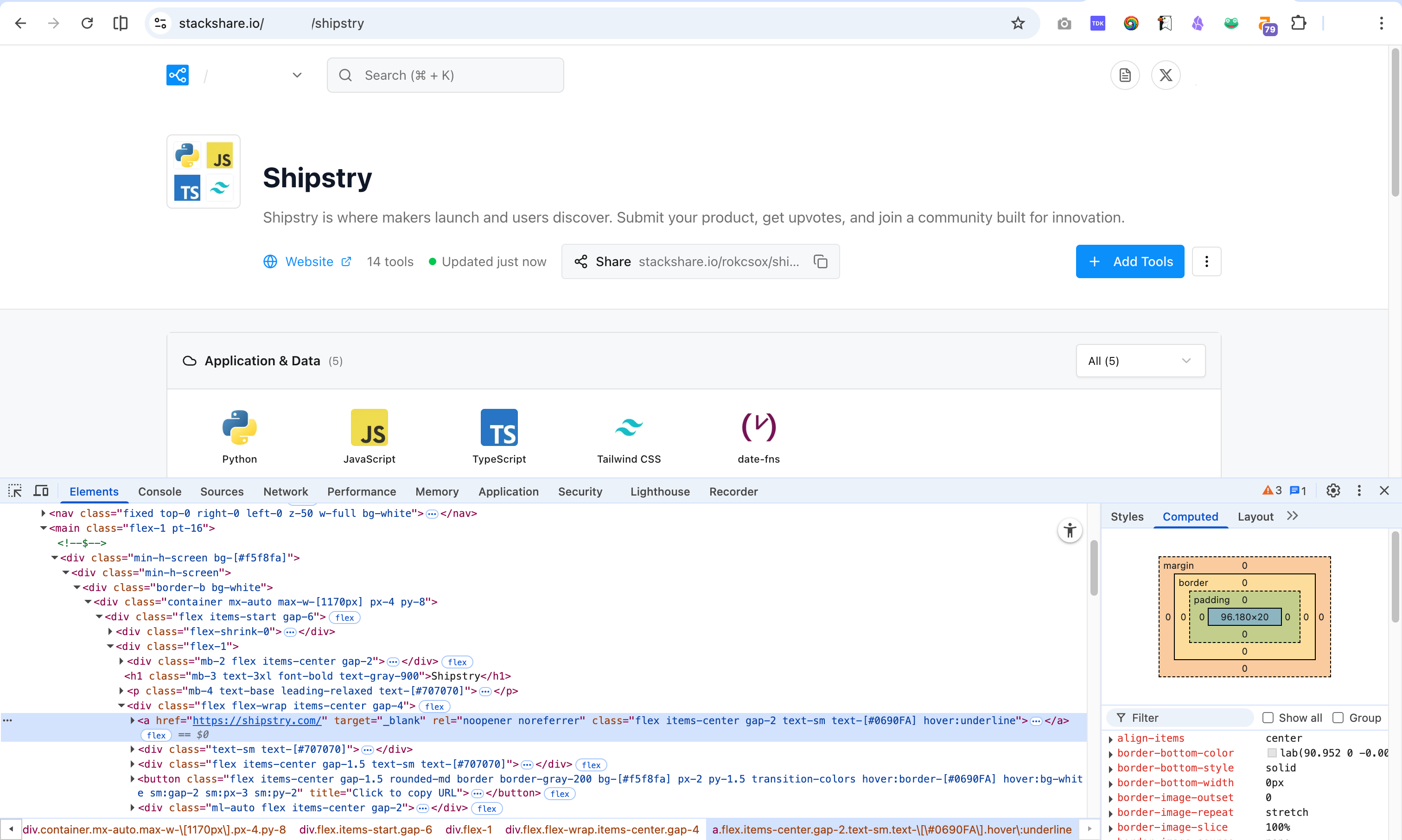 PS. 嫌麻烦的话跑一下 `npx stackshare scan`,自动识别技术栈,但网站链接记得自己手动加上。