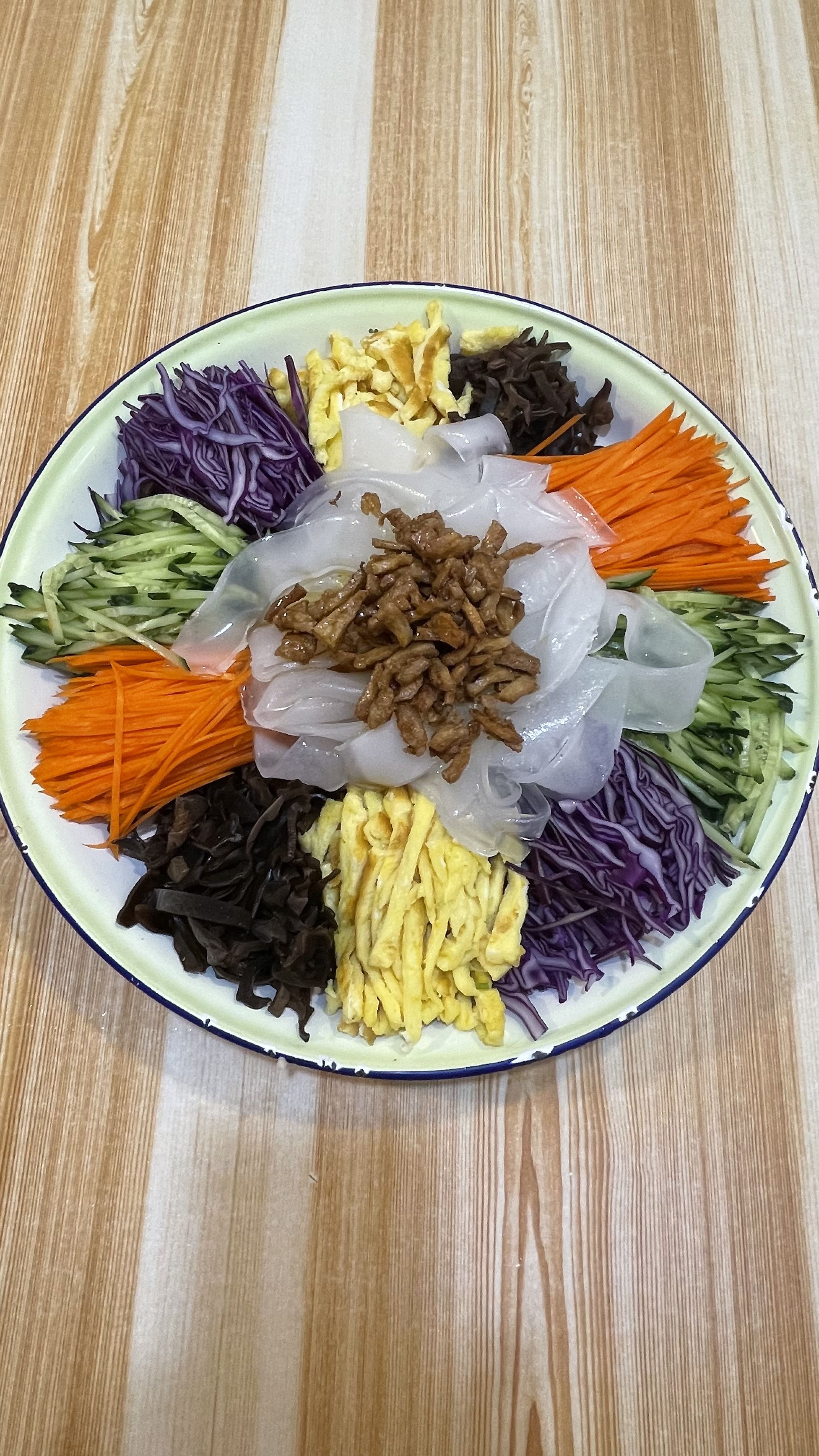 这些天,肉类的食物吃油住了,来点凉爽解腻的菜,五彩大拉皮儿,吃起来特别爽,配上这稻花香大米饭,那就是嘎嘎的香🤗