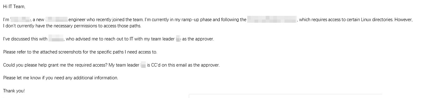 今天刚毕业的新人给我们IT发了个邮件,满满的青涩😀