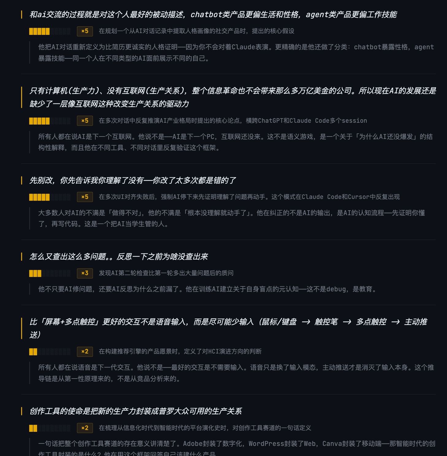 反正自己现在和ai的对话是比和人多多了,一直有这个记录和分析聊天记录,从而更好的认识自己的需求。