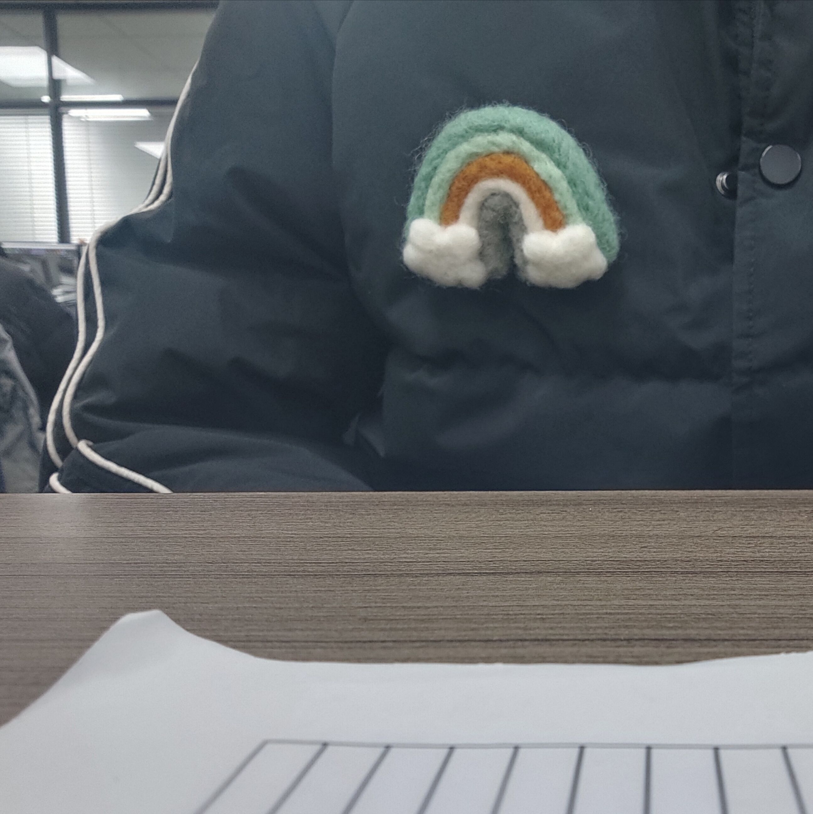 冬天黑乎乎的羽绒服搭配一个可爱毛毡胸针点缀一下稍微不土一点了😜