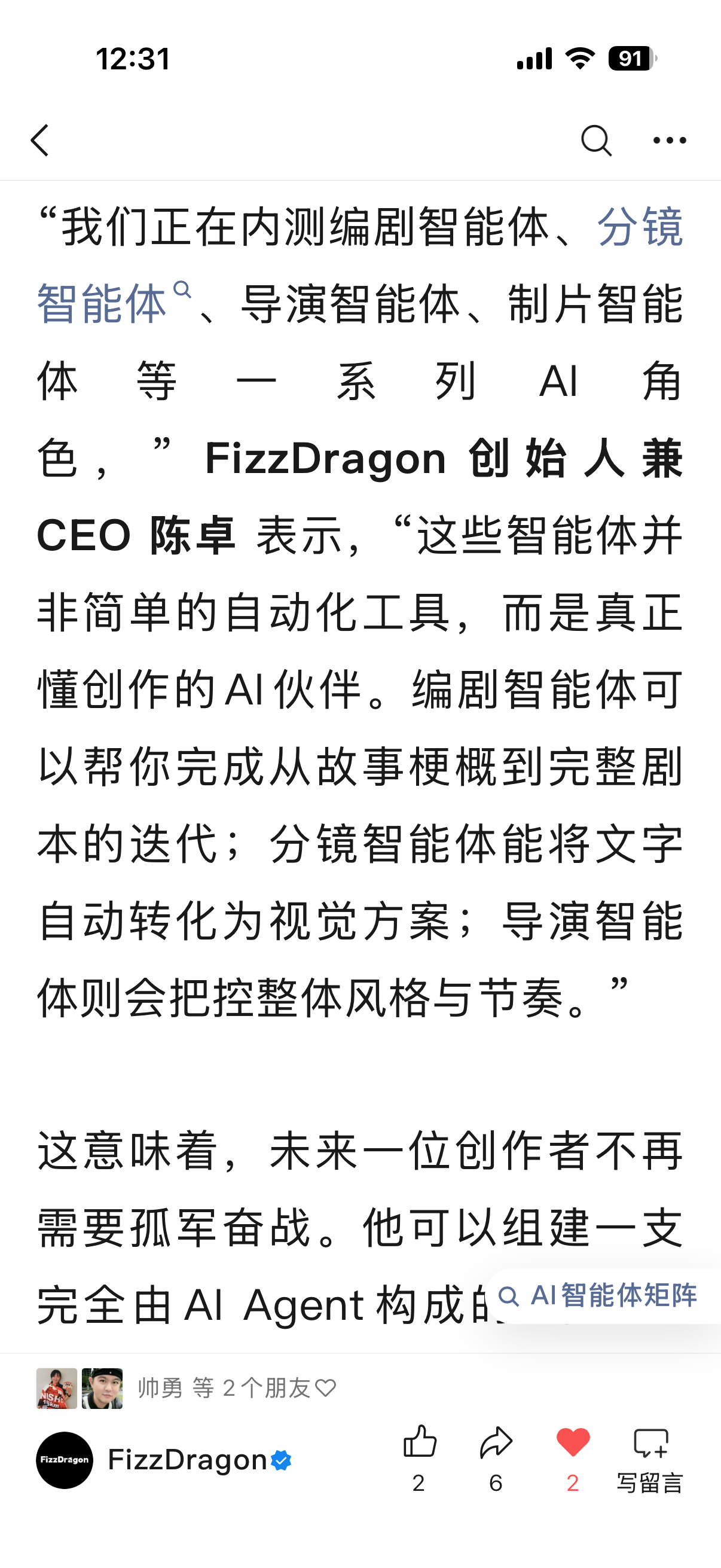 我们会尽快上线:AIGC剧组大厅(赛博横店),还有AIGC人才广场(FizzDragon创作者俱乐部)等功能,届时你们可以看到全球所有AIGC创作者,还有24小时流动的剧组大厅。