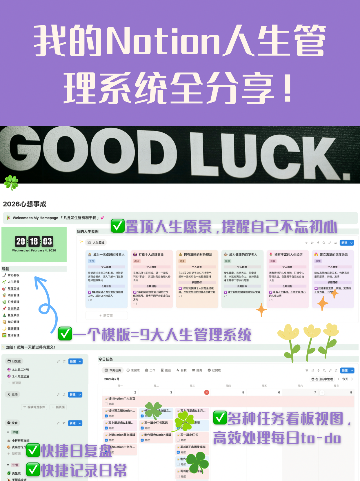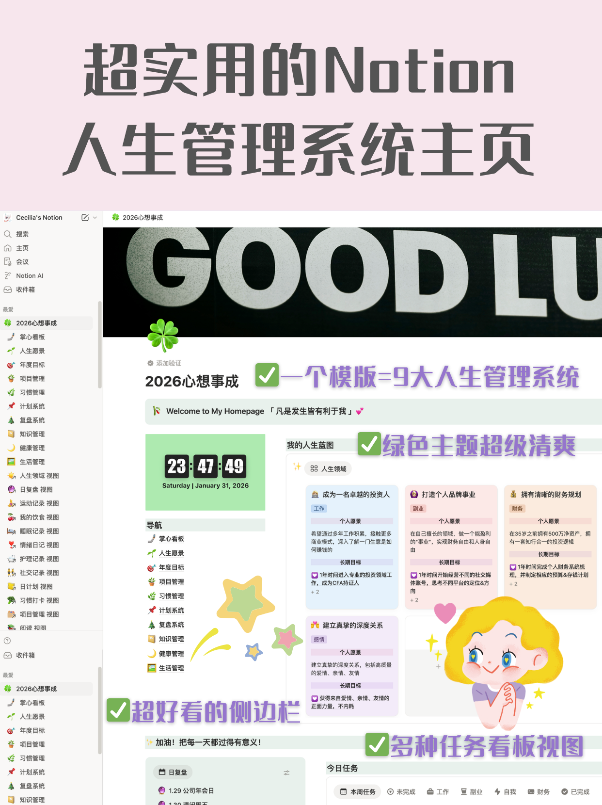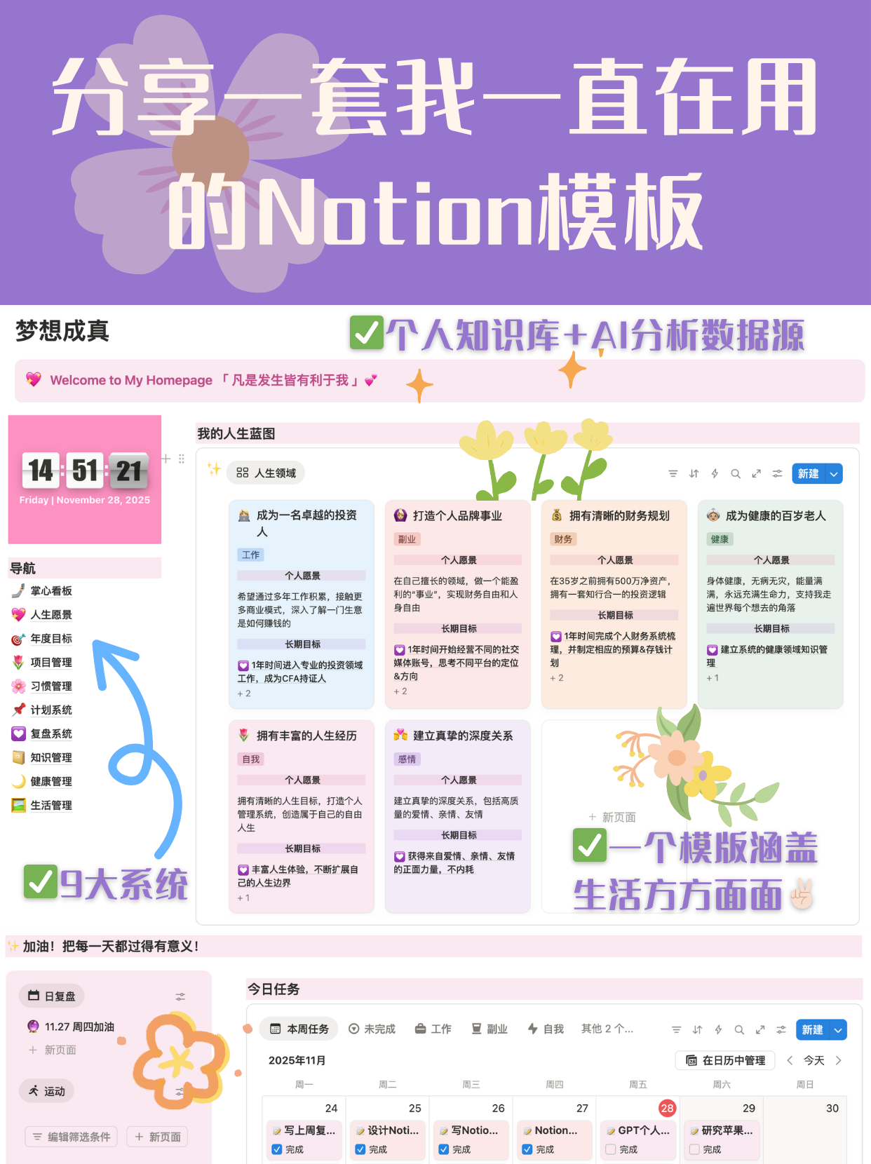 这是我现在每天都在用的 Notion 人生管理系统主页(全分享)!