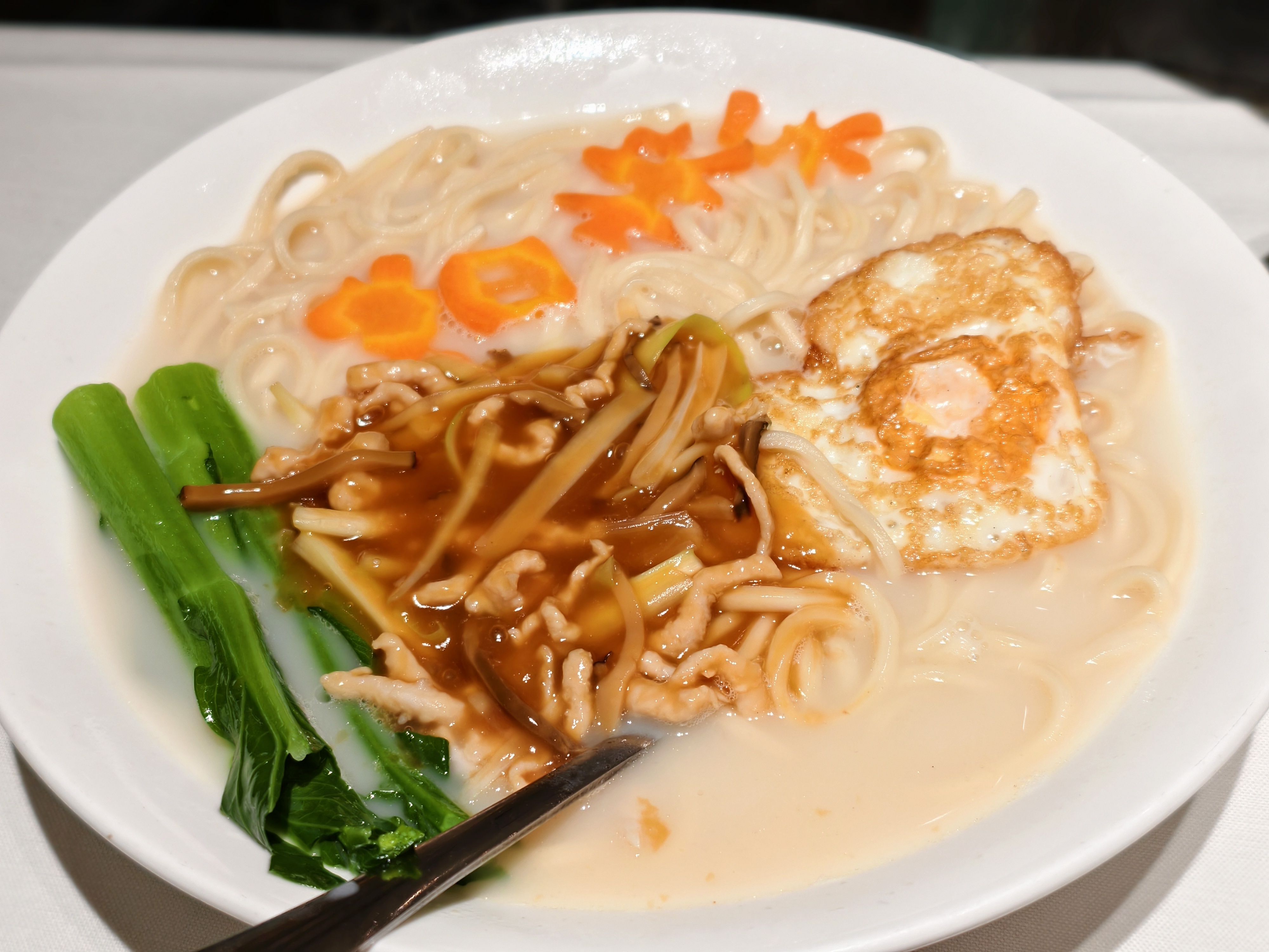 2.华姐清汤腩:这个汤底挺适合我的,有一种清甜的感觉,竹升面也挺好吃的。还有这个猪排配上柚子还挺特别,吃起来也不会腻。