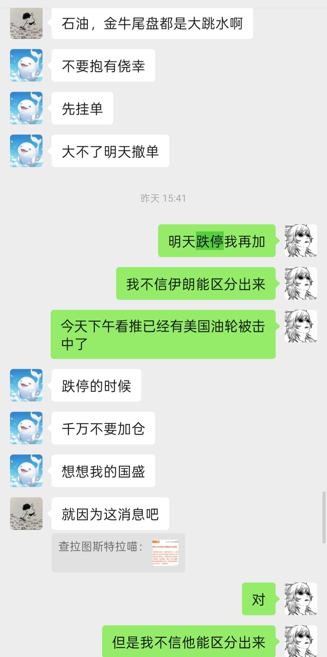 见证历史。估计这波日韩又要套牢一大批人,想起来昨天快收盘时候央视发了个新闻,伊朗说没封锁霍尔木兹海峡,然后还有个新闻说中俄船只可以过,美以欧船只不行。当时石油尾盘直接自由落体,但是其实只说一部分的真话完全可以做到说谎的效果。