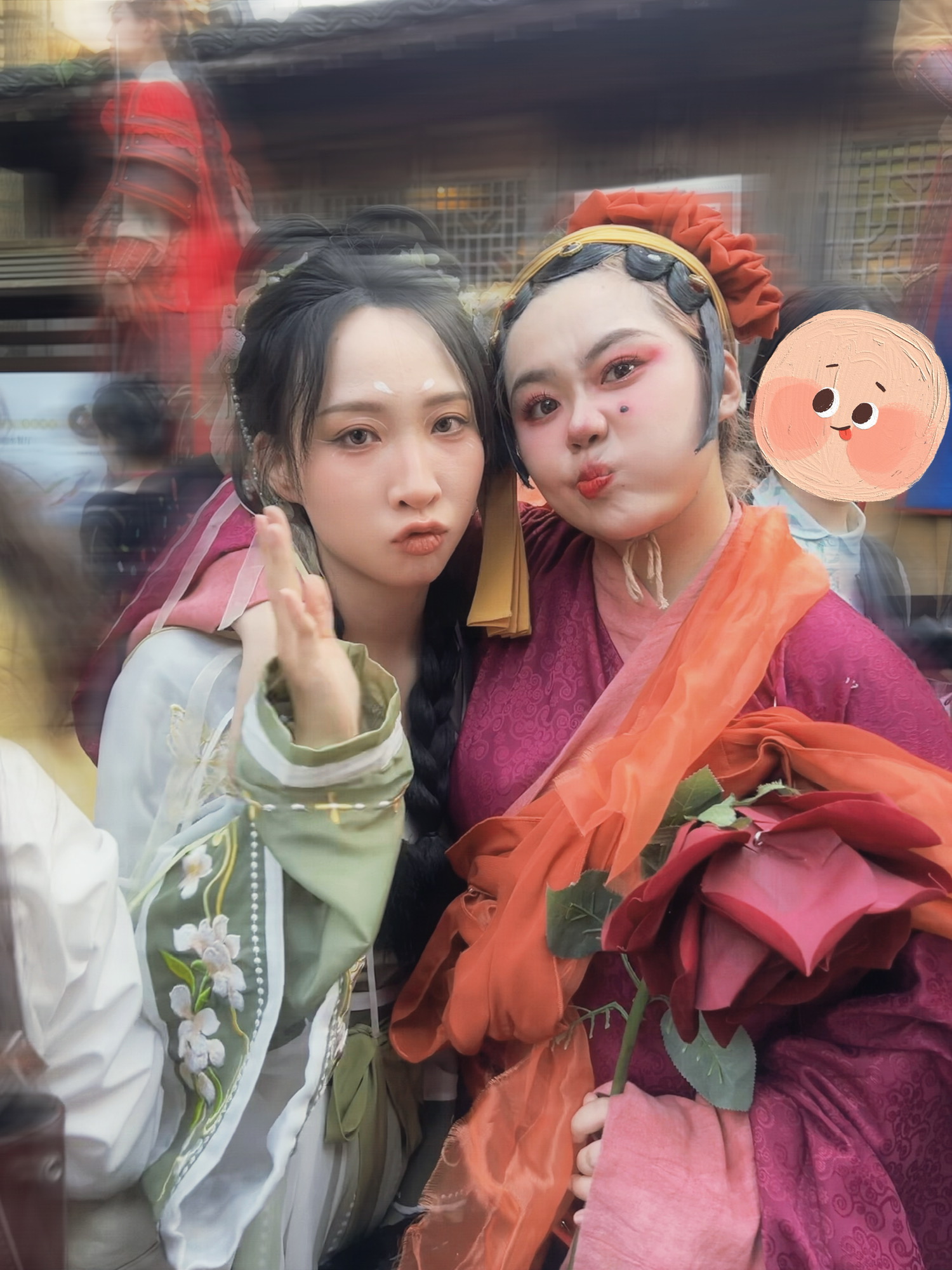和超级可爱的媒婆姐姐合上了影,第一天遇到她人太多了,根本挤不进去。没想到第二天在路上乱走就又碰到了!