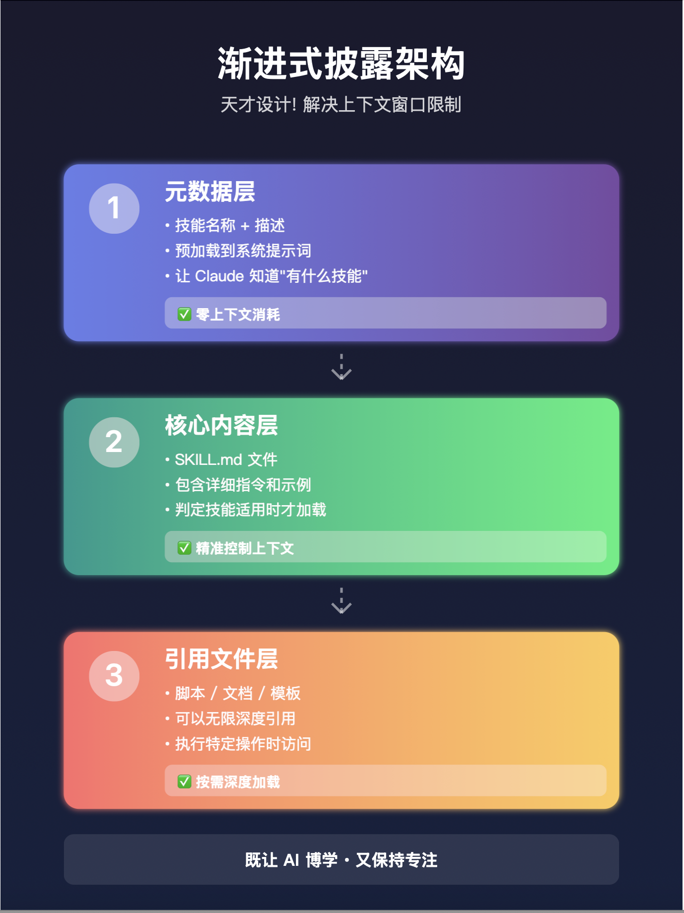 而且,最绝的是它的“渐进式披露”架构。