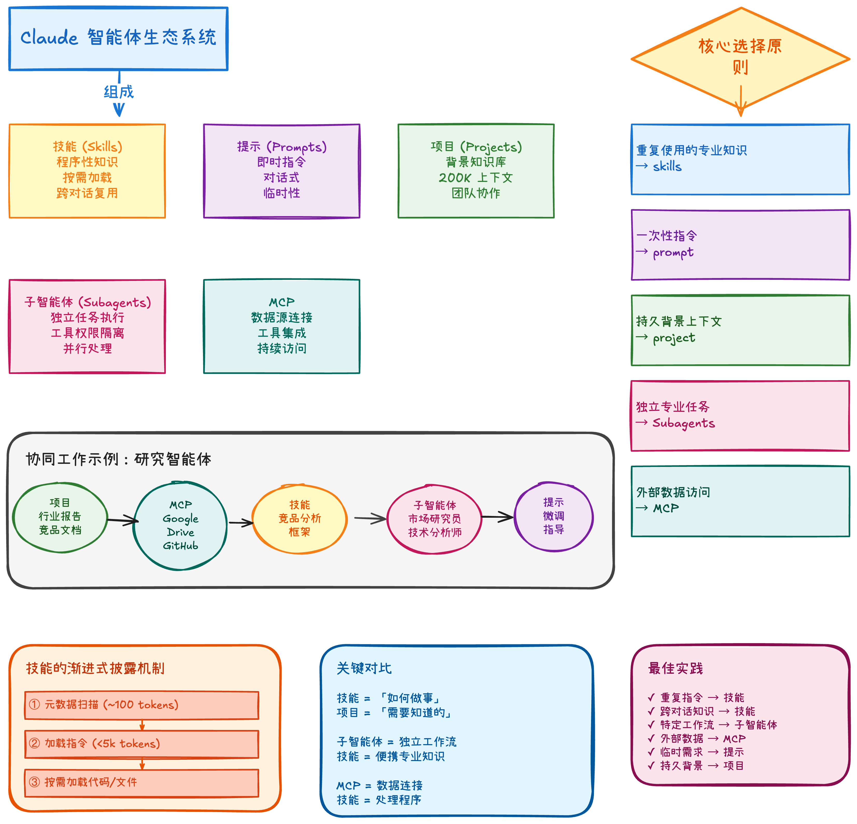 这玩意儿听着很玄乎,但你把它想象成AI有个“技能清单”就行了。它只在需要的时候,才会去加载具体的技能内容,完全不浪费宝贵的上下文窗口。就像你跟一个顶级专家沟通,你不用把所有资料都念给他听,他会自己按需调取。
