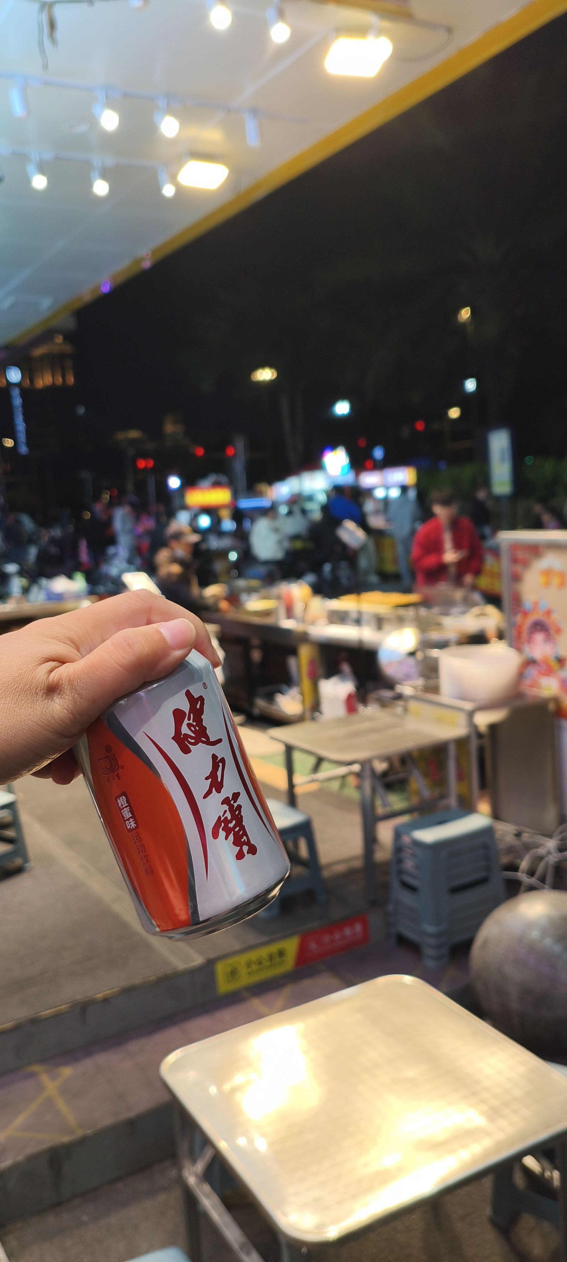 拿着汽水。有一天晚上我收款,收到了16,000块。现在我浑身上下估计也就100多。