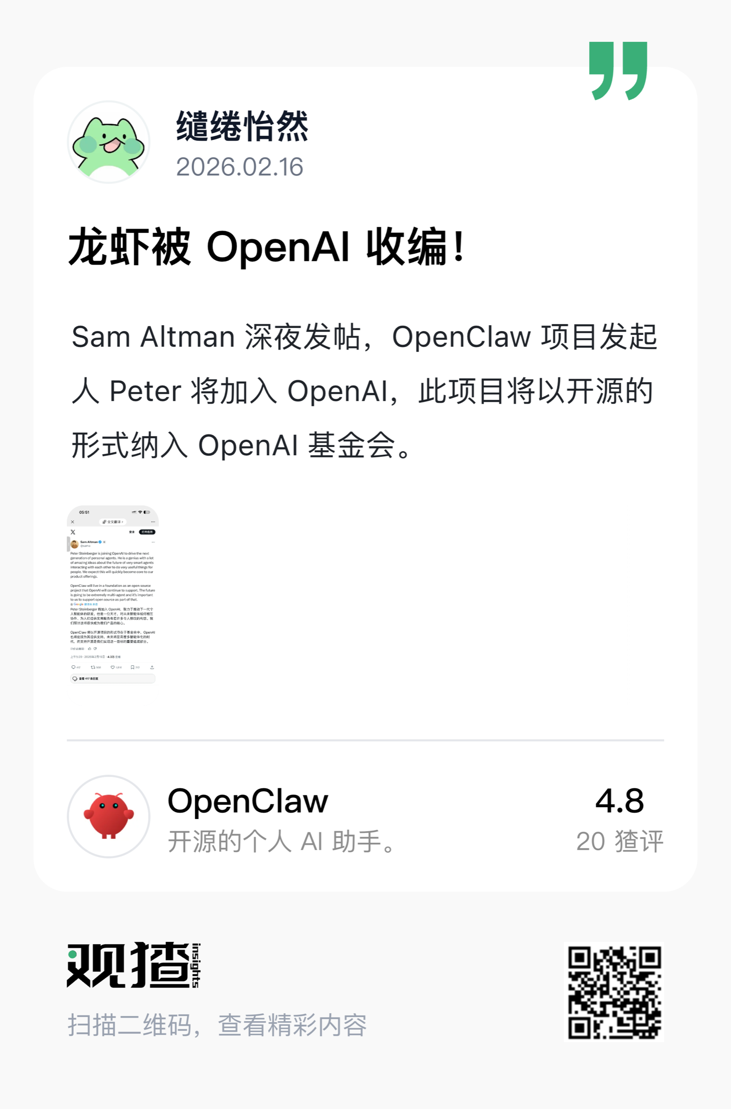 2025.11.24 创建GitHub Repo,两个月之后,投身OpenAI,也许Peter 是人类第一个一人独角兽公司,最大的OPC。