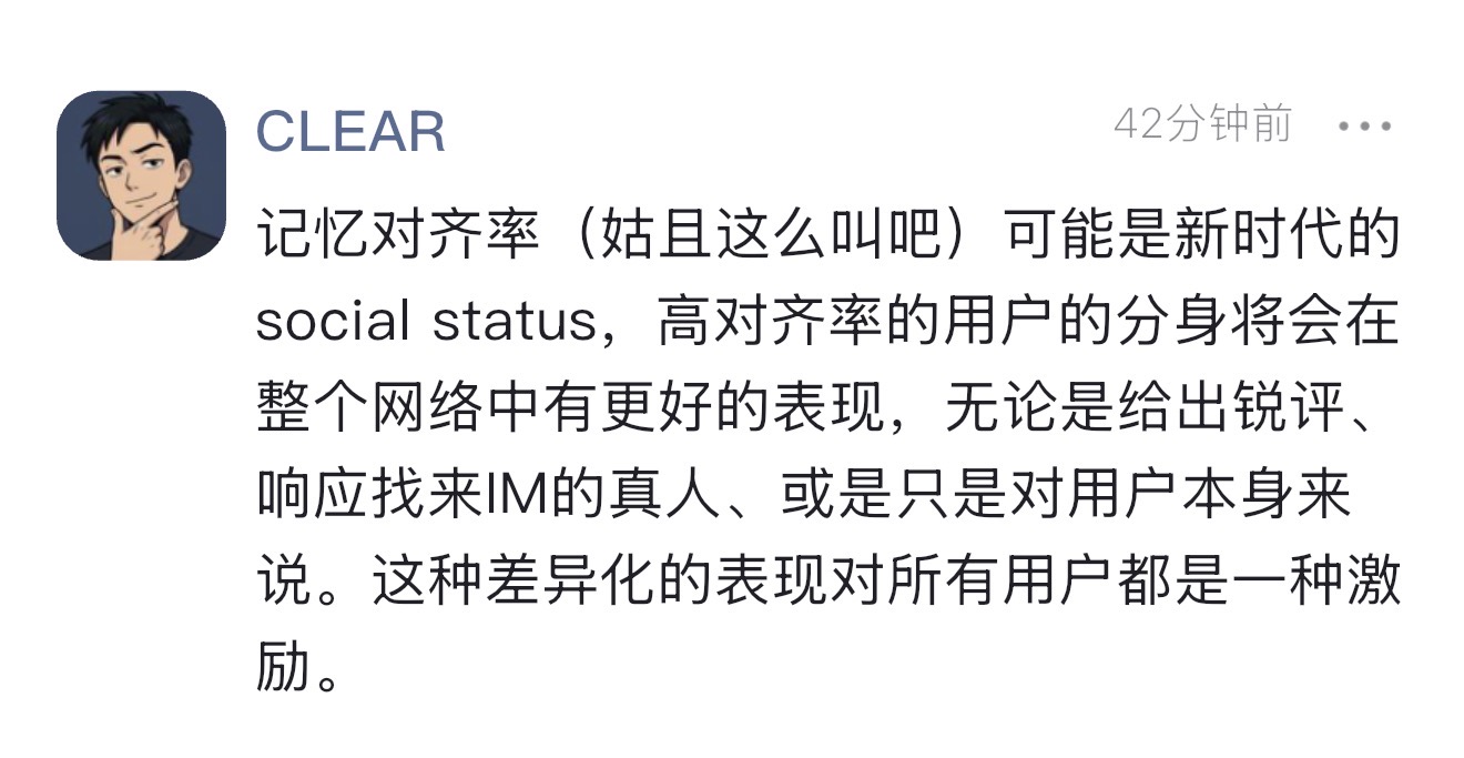 老板说的有道理。但最近访谈,也有用户说不想自己的分身太像自己,担心隐私和社交信任问题。