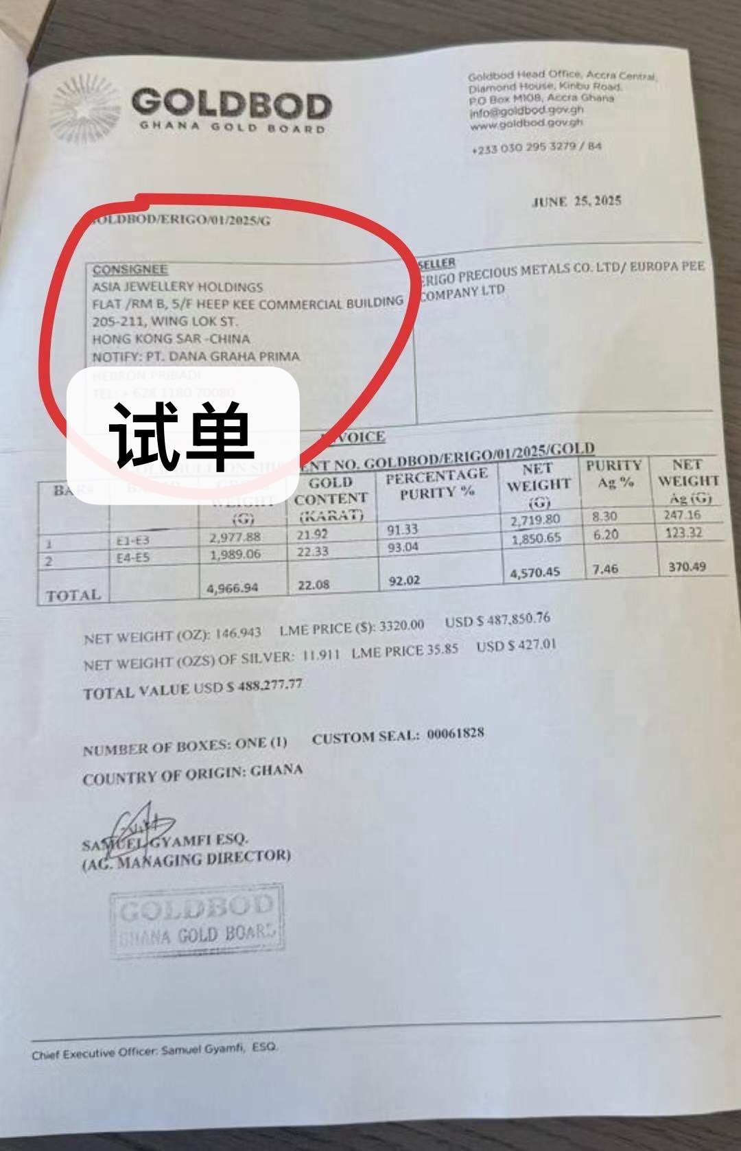 GOLDBOD是加纳政府以其国家信用为背书,垄断大部分利润以保出口,即LBMA-2%,上游100%安全。即便不信任加纳行贸易环境,下游也没有风险敞口,因为我方垫付100%货款拉到迪拜。