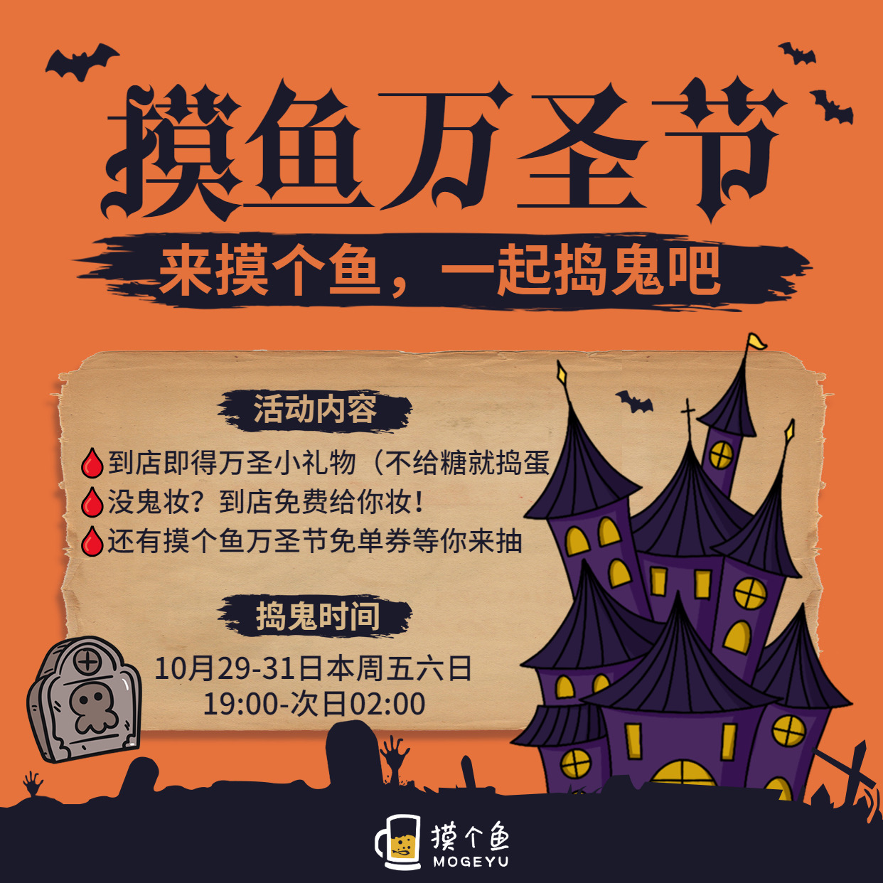 🩸还有周六晚12点的摸个鱼万圣节免单券等你来抽!
