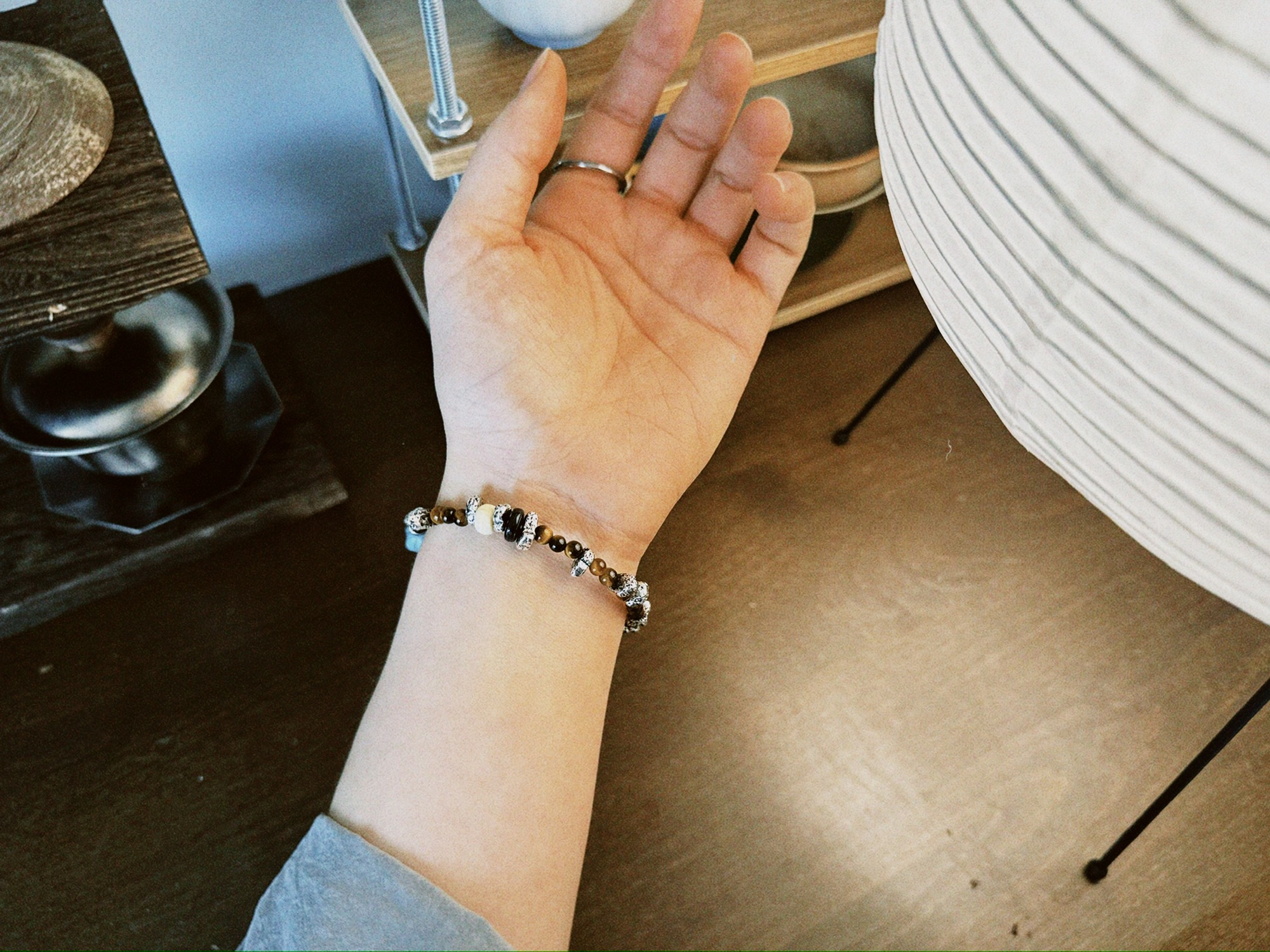 这一手虎眼石、蓝松石、白松石和水晶的搭配,很喜欢。