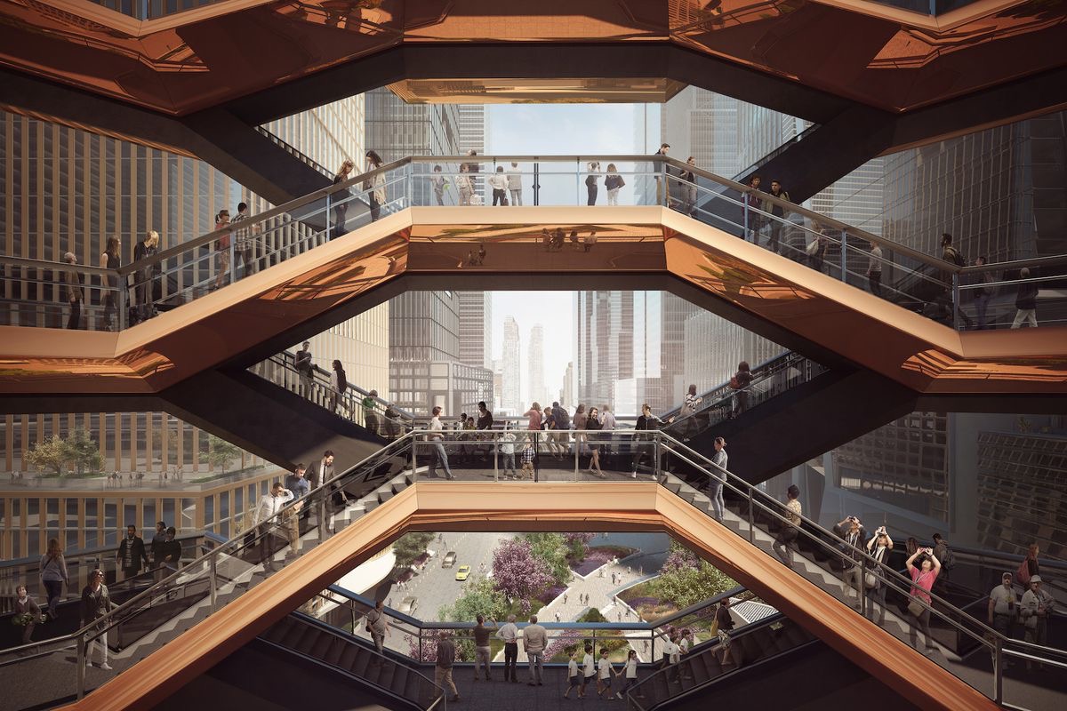 著名建筑家Thomas Heatherwick的新作品《容器》在纽约揭幕,位于Lexington大道,整体采用蜂窝状结构,4年时间竣工,灵感来自印度的阶梯井式建筑,共2500多级台阶,80多处平台。