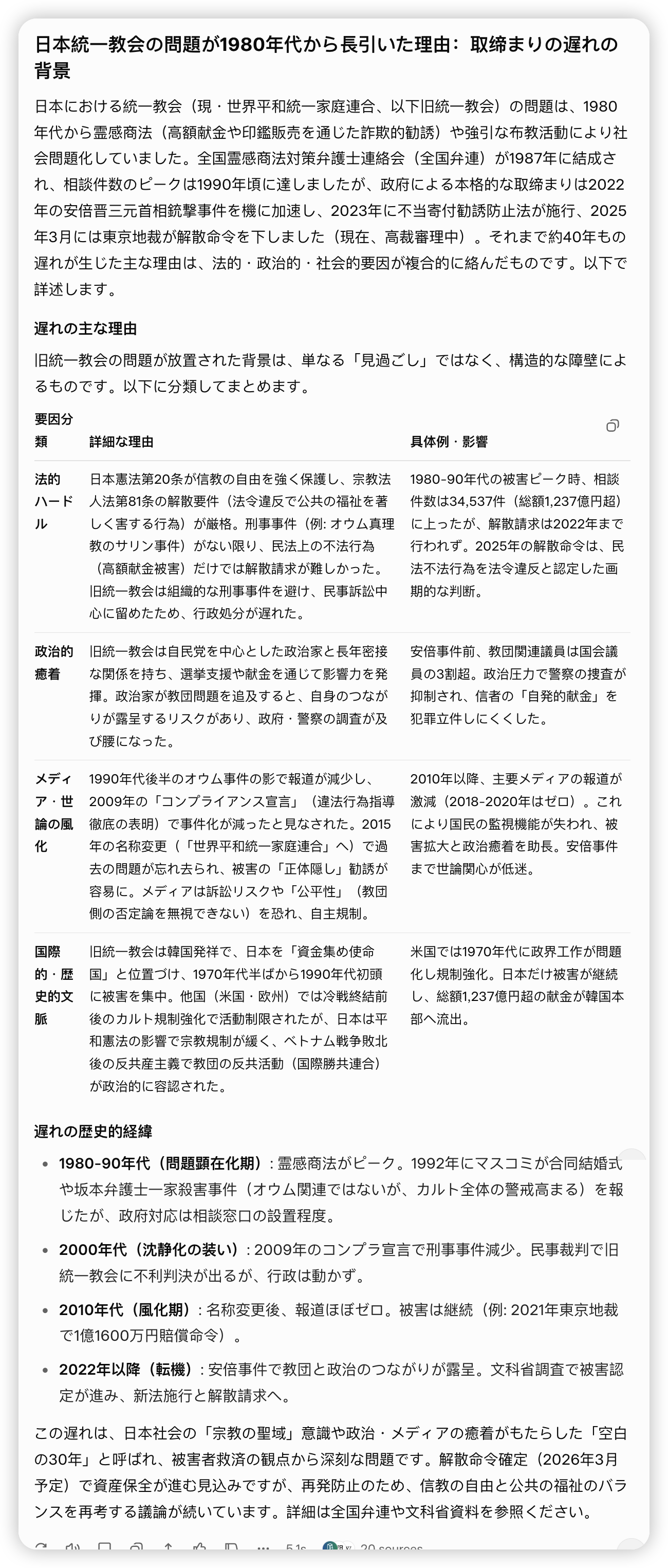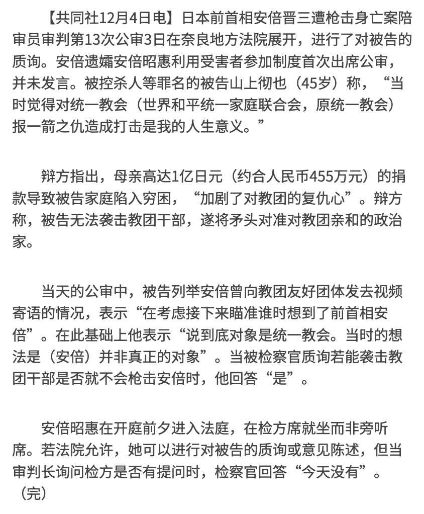 因为看到这个新闻,于是让AI总结,了解了日本统一教会始末,号称文明程度很高的发达国家日本,还有这等荒诞事,安倍事件之前,监督机制几乎没起作用,实在大跌眼镜。