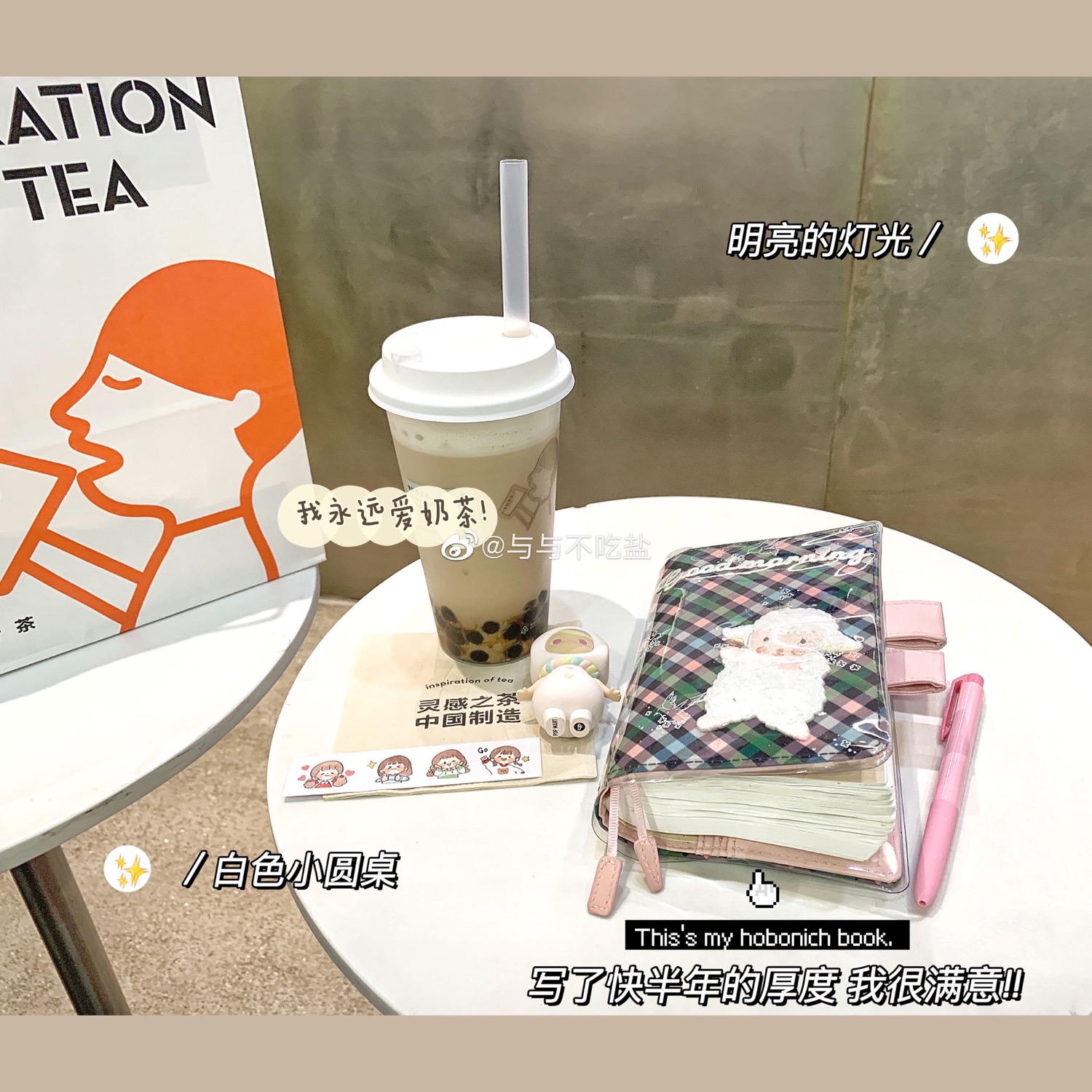 ⚫︎在借用星巴克的小圆桌拍了一个九宫格。