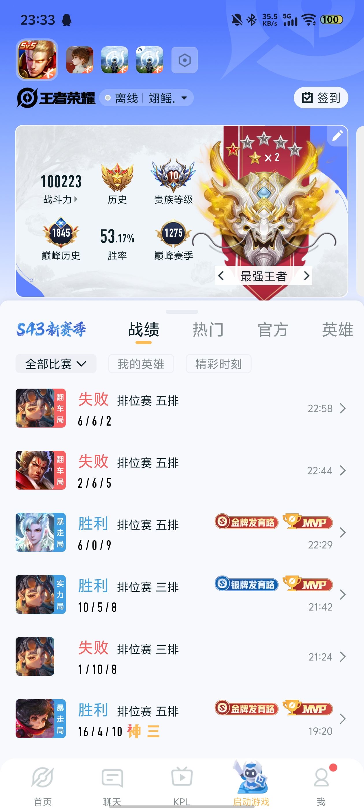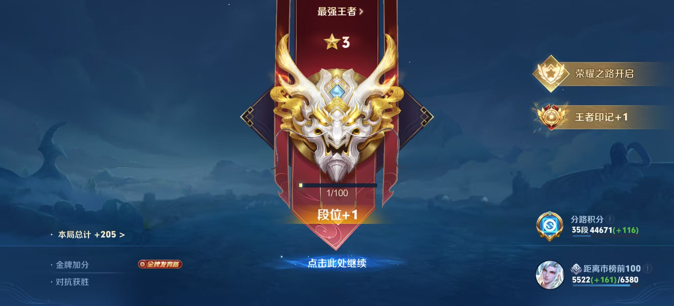 上王者了