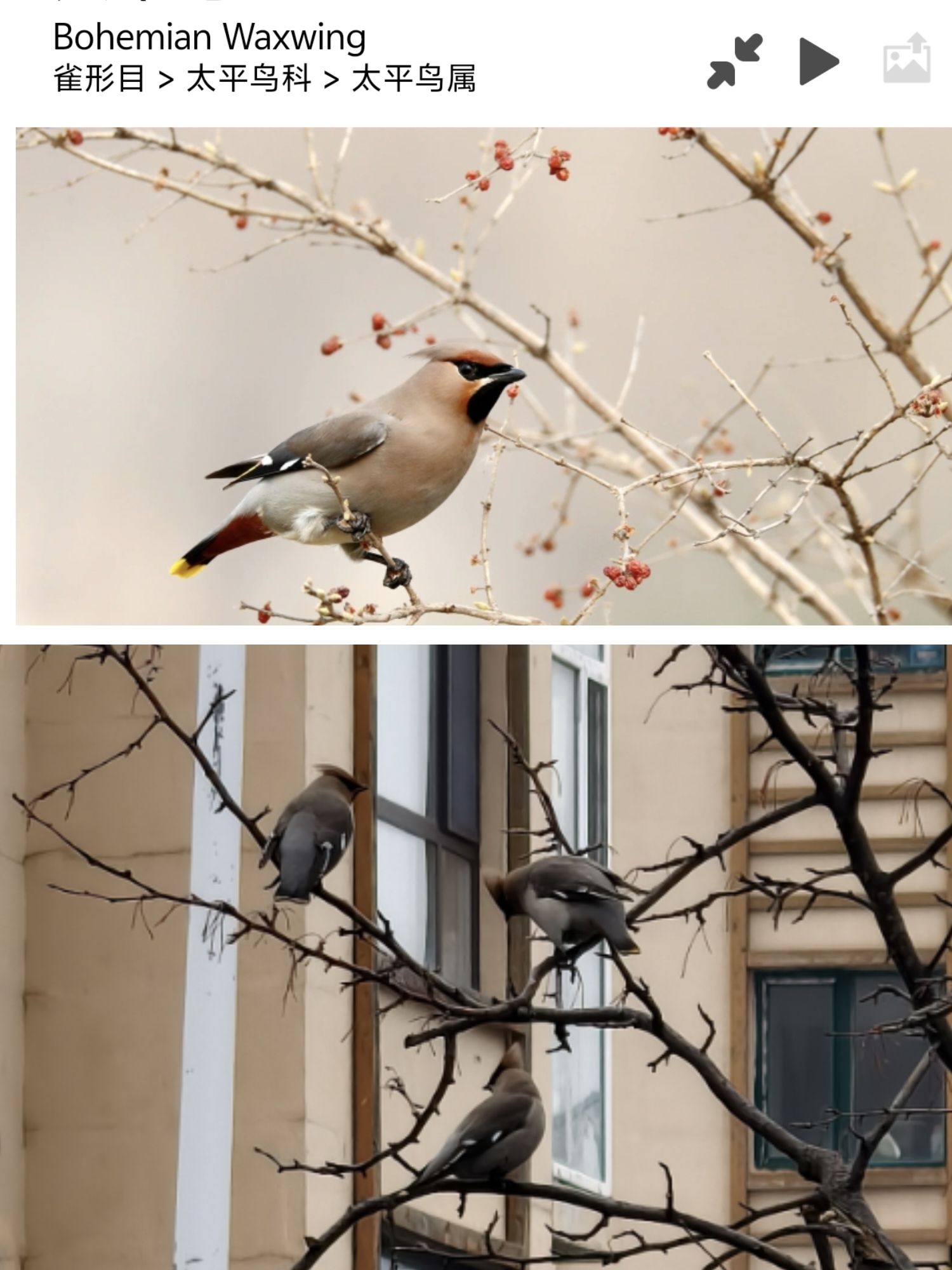 在大街上成群的漂亮 太平鸟,尾巴尖是黄的