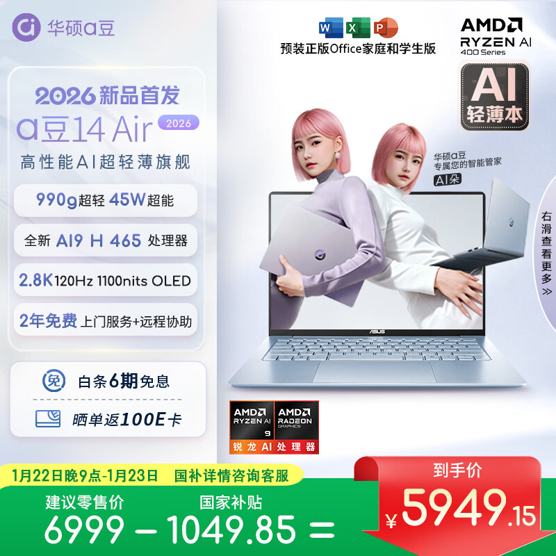 2026 款华硕 a 豆 14 Air 笔记本发布:990g 重量、锐龙 AI 9 H 465 + 32G + 1T 售 6999 元起 - IT之家