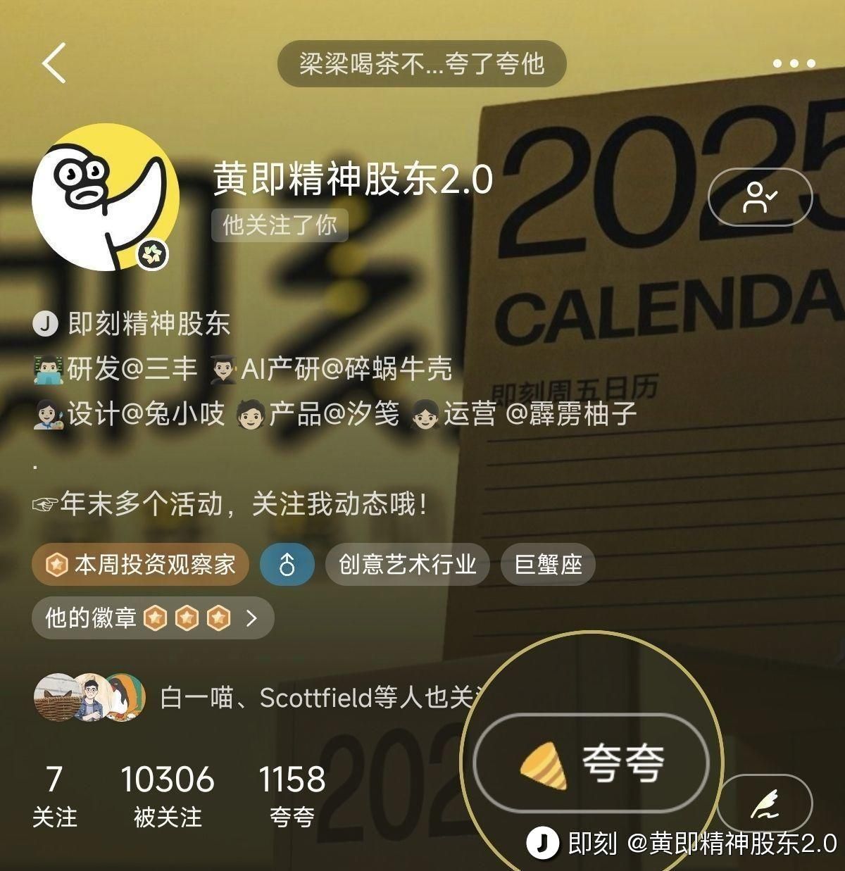 精神股东团伙在拧螺丝的百忙之中,手搓了个新活动——即友合影,看2025和你互动“即”分最高的7位即友到底是谁!