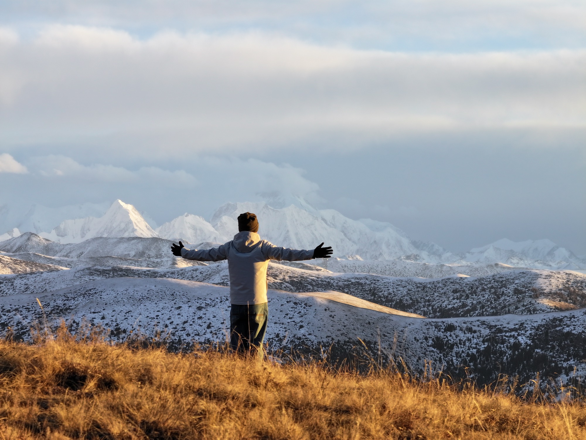 在冬日晴朗无风的川西雪山下吃个早餐还是有那么点安逸的