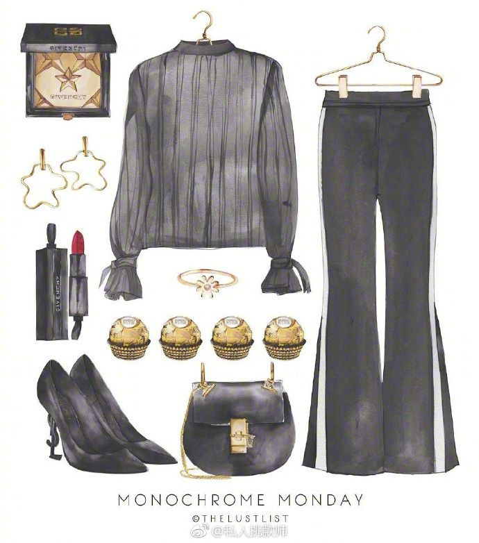 大概是一个日本/韩国画师?日系的少女感满满的服装单品设计,有各种风格和色系,有点接近洛丽塔和通勤之类的。很好看,也很精致。参照下面两个图但是比它们精致好看很多,衣服的排版也很美观,有横有竖这样。还有包包这样的单品,记得还有一条红色上面有樱桃或者碎花的裙子…… 百度搜了好久都没找到qwq