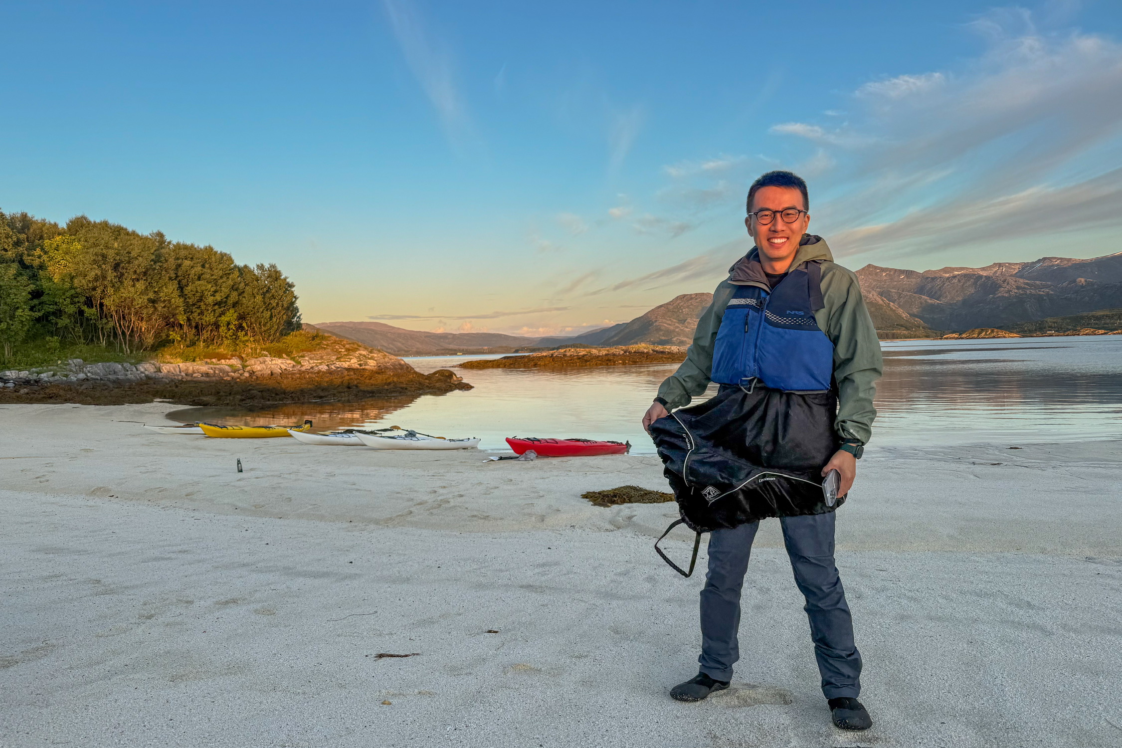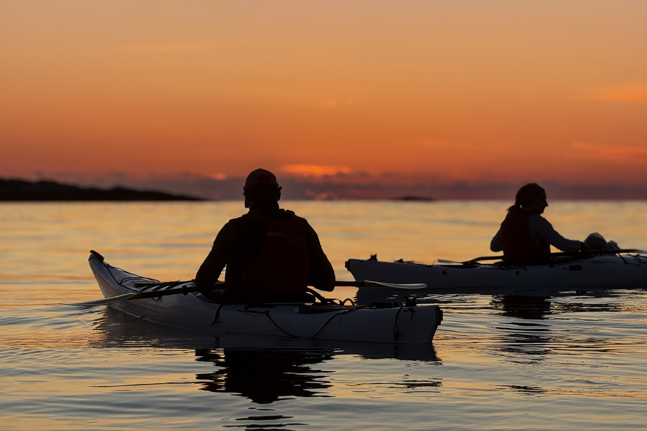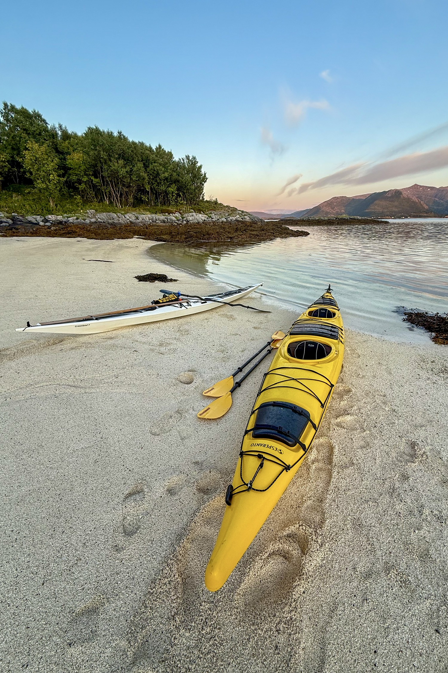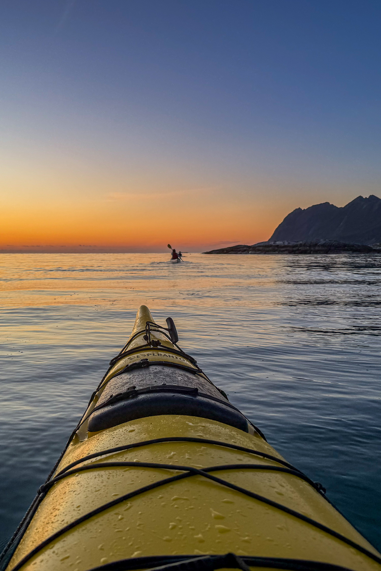 北极的午夜日落和海上 Kayak