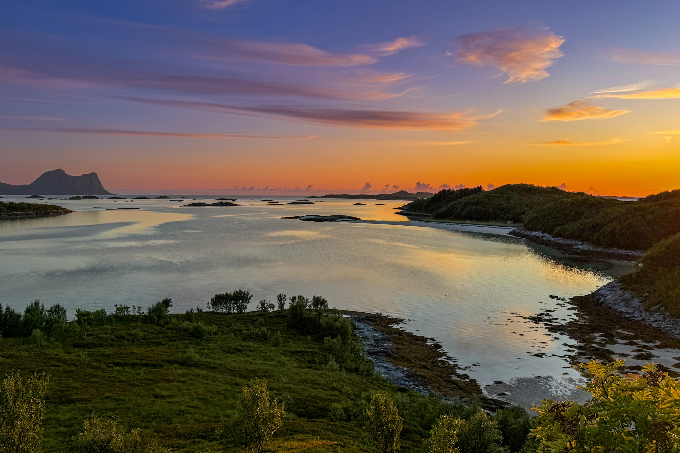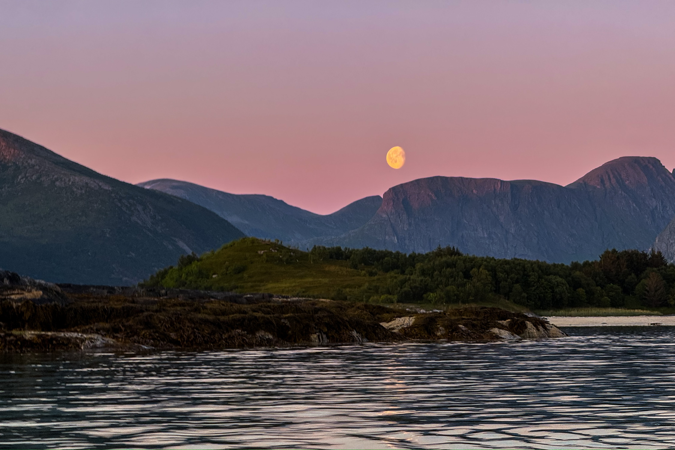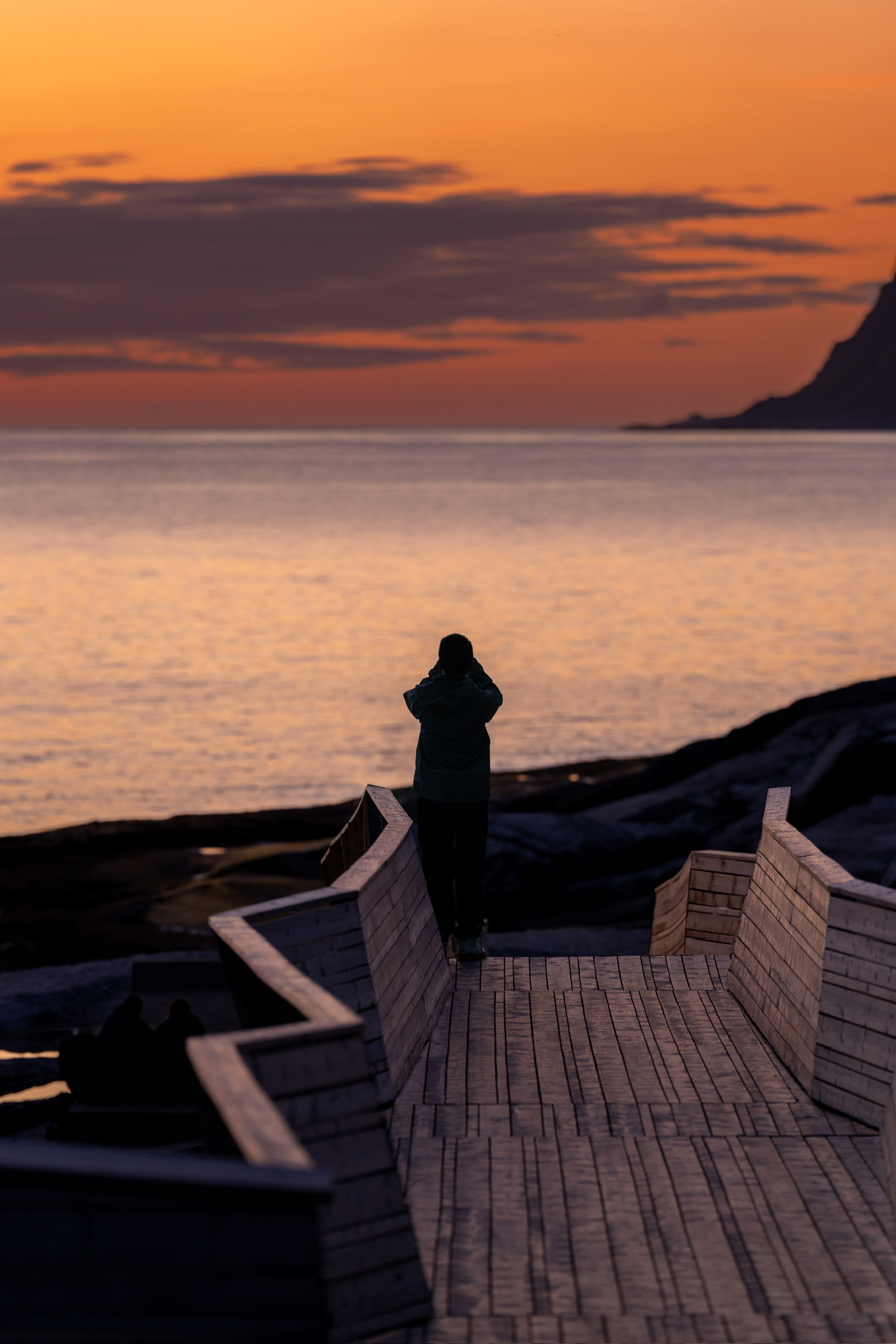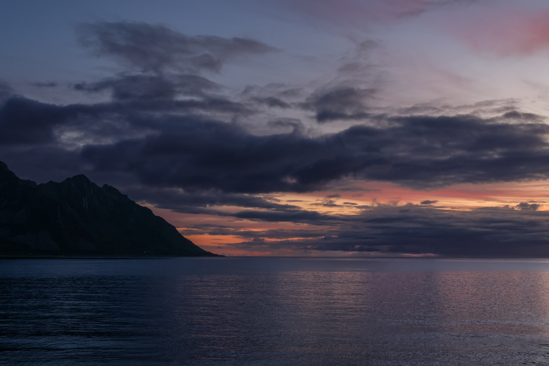 北极的午夜日落和海上 Kayak