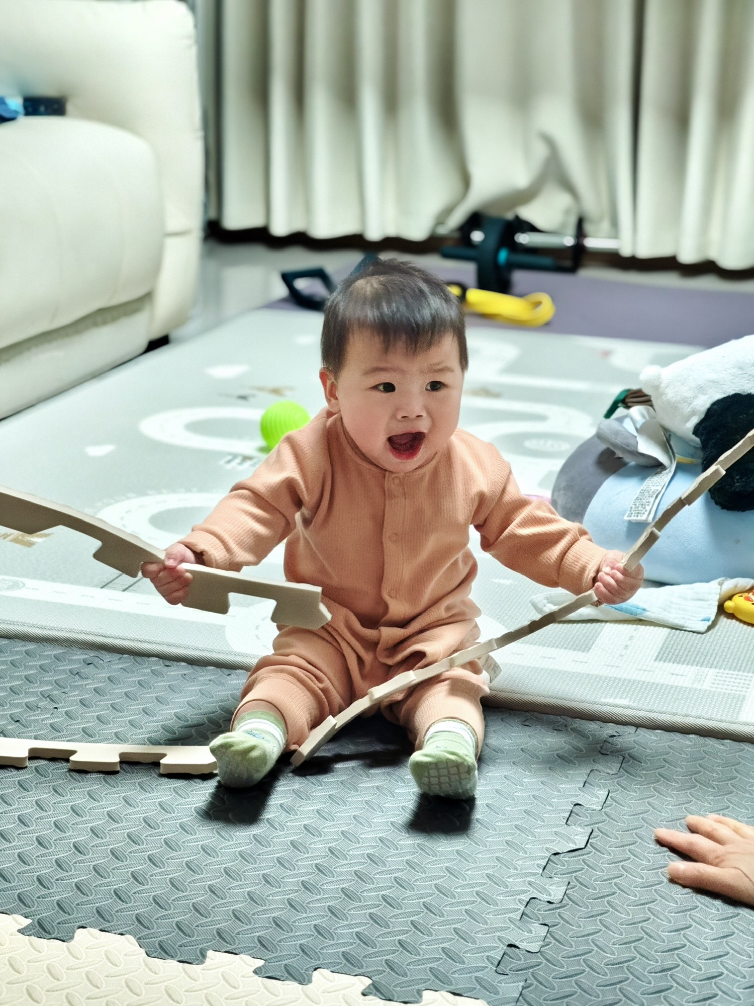 孩子也成长到了8个半月,会坐了,也会发出ba,ma的声音了。这是一个高需求中的高需求,我们夫妻加我妈,三个大人都精疲力尽。最近他晚上有时甚至每一两个小时哭一次,需要重新哄睡。