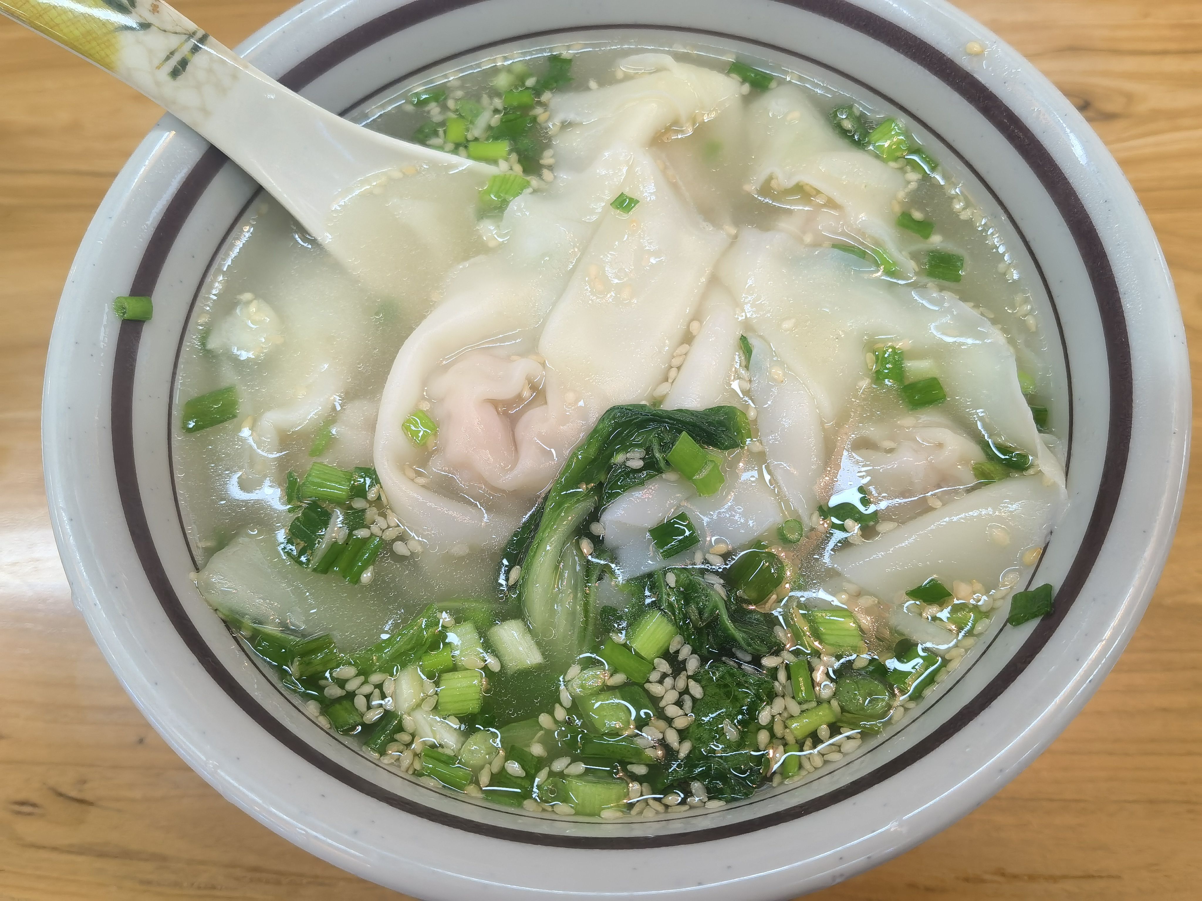 吃上了美味的鸡汤抄手,隔壁桌女孩拍了泡菜发给远方的朋友看,并分享给店老板说她们很喜欢你的泡菜,就是吃不到。店里服务员站在门口欣赏自己的腿型,用手拍一拍,对旁边人说自己的腿再直一点就更好看了,旁边人说“pie 了,pie了重新长过”,听着很暴力实则很轻松。
