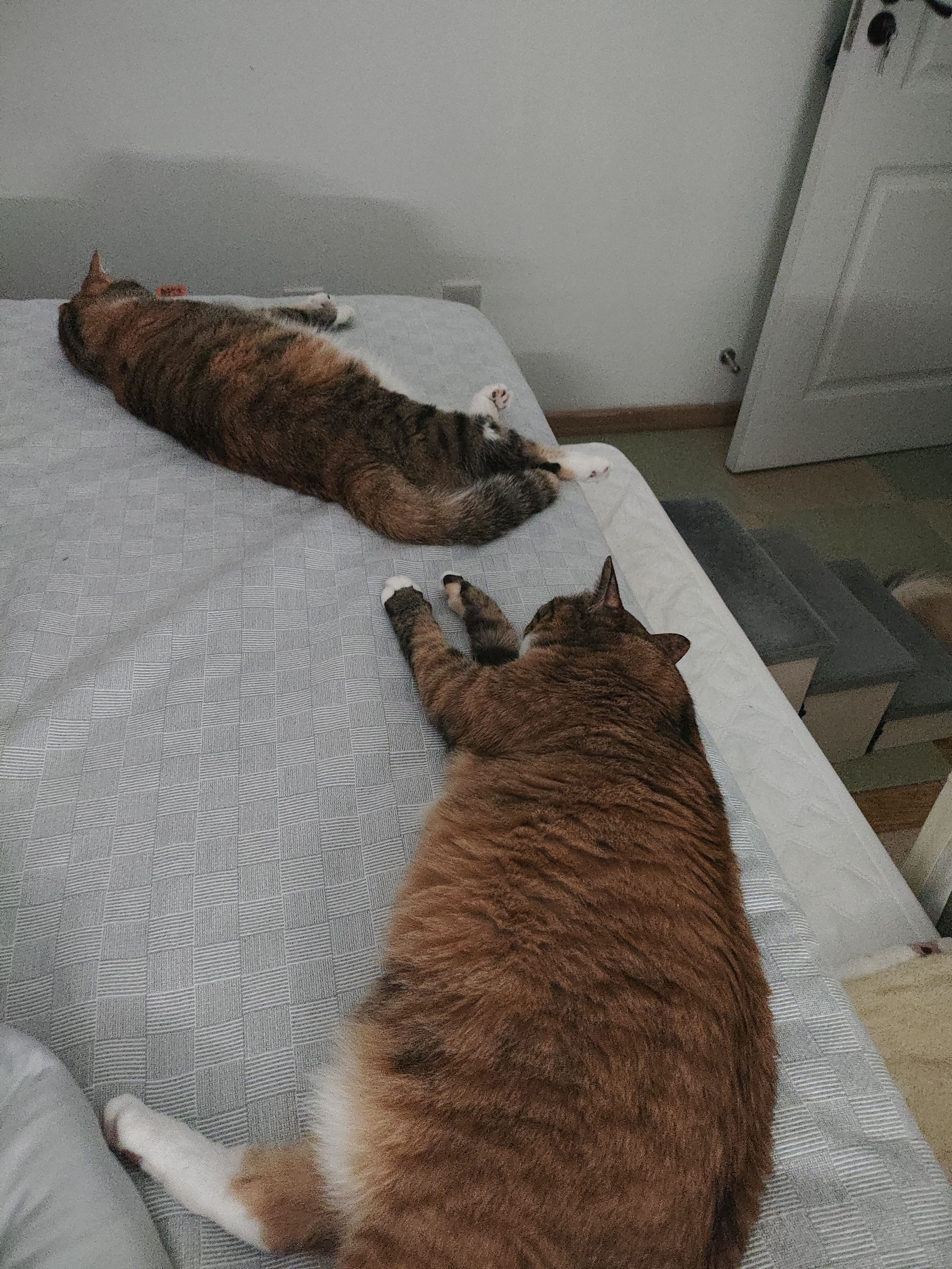 清汤大老爷!两只小茂密无良侵占本二旬老人的床位啊!