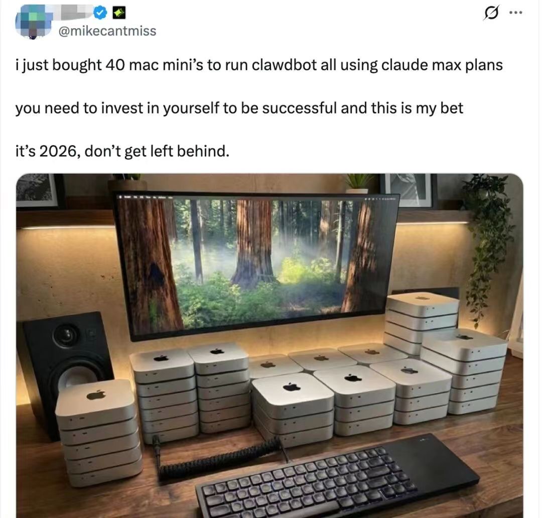 “几十台 Mac mini 跑 agent”, “把账户交给 AI 自动交易”, 小红书和 X上流传的段子听着心潮澎湃