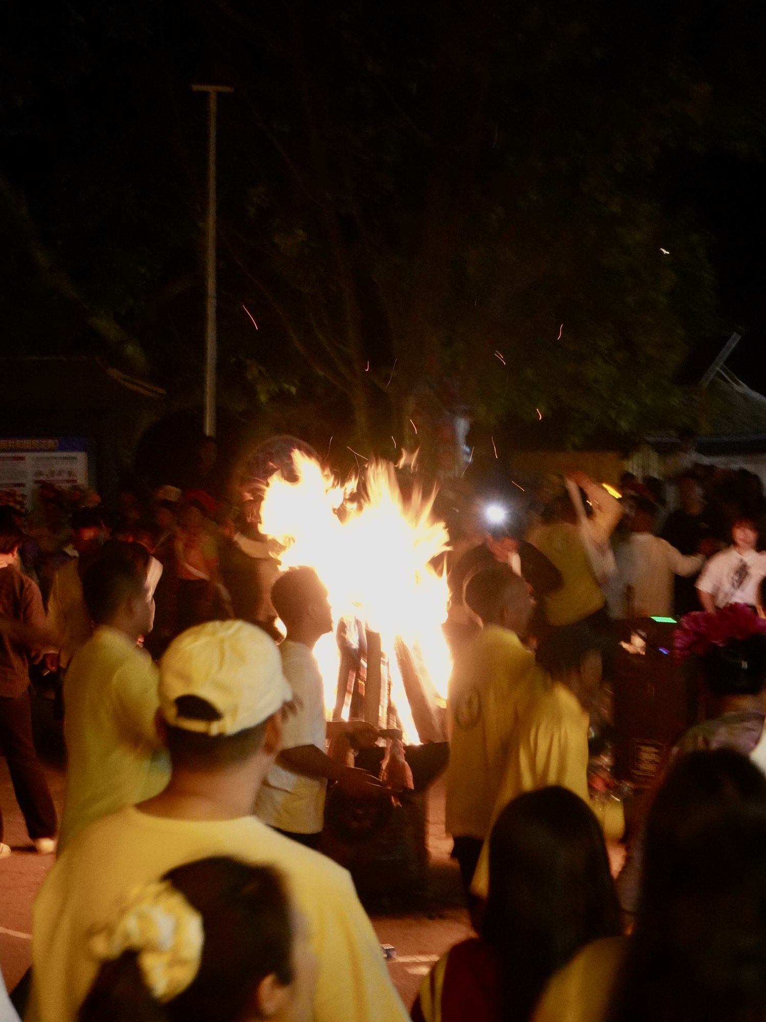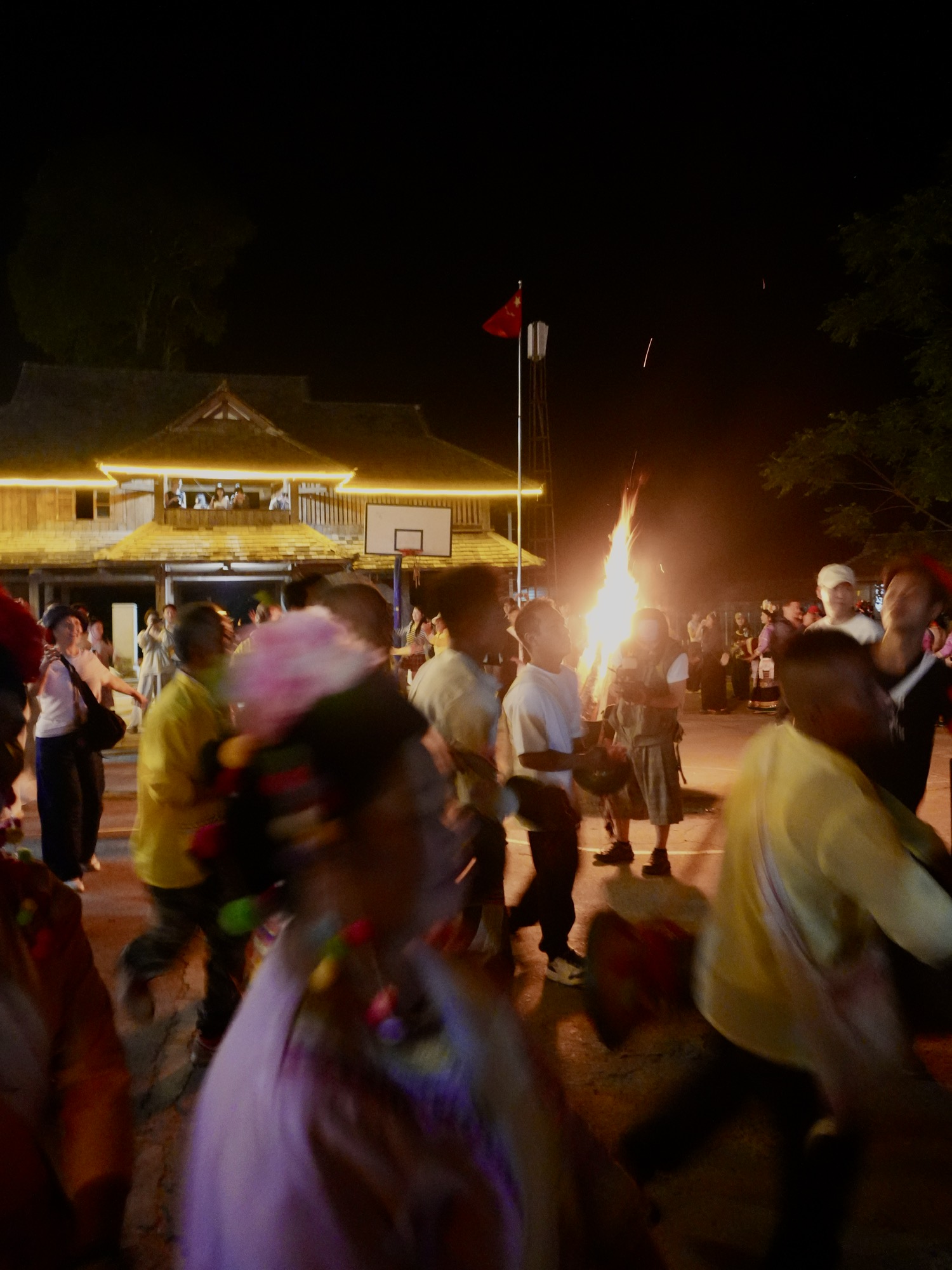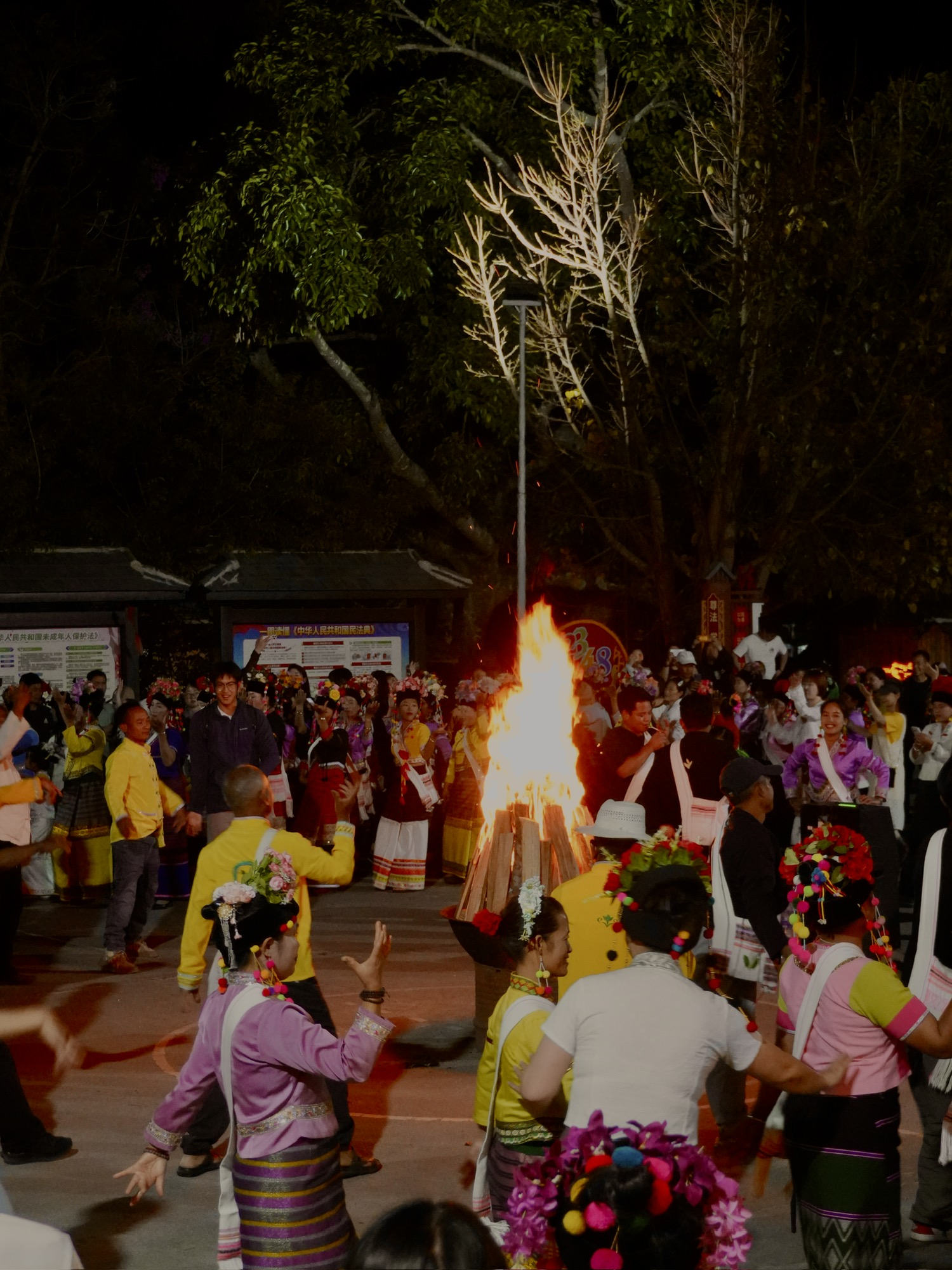 拉祜族、布朗族 齐聚篝火旁载歌载舞。