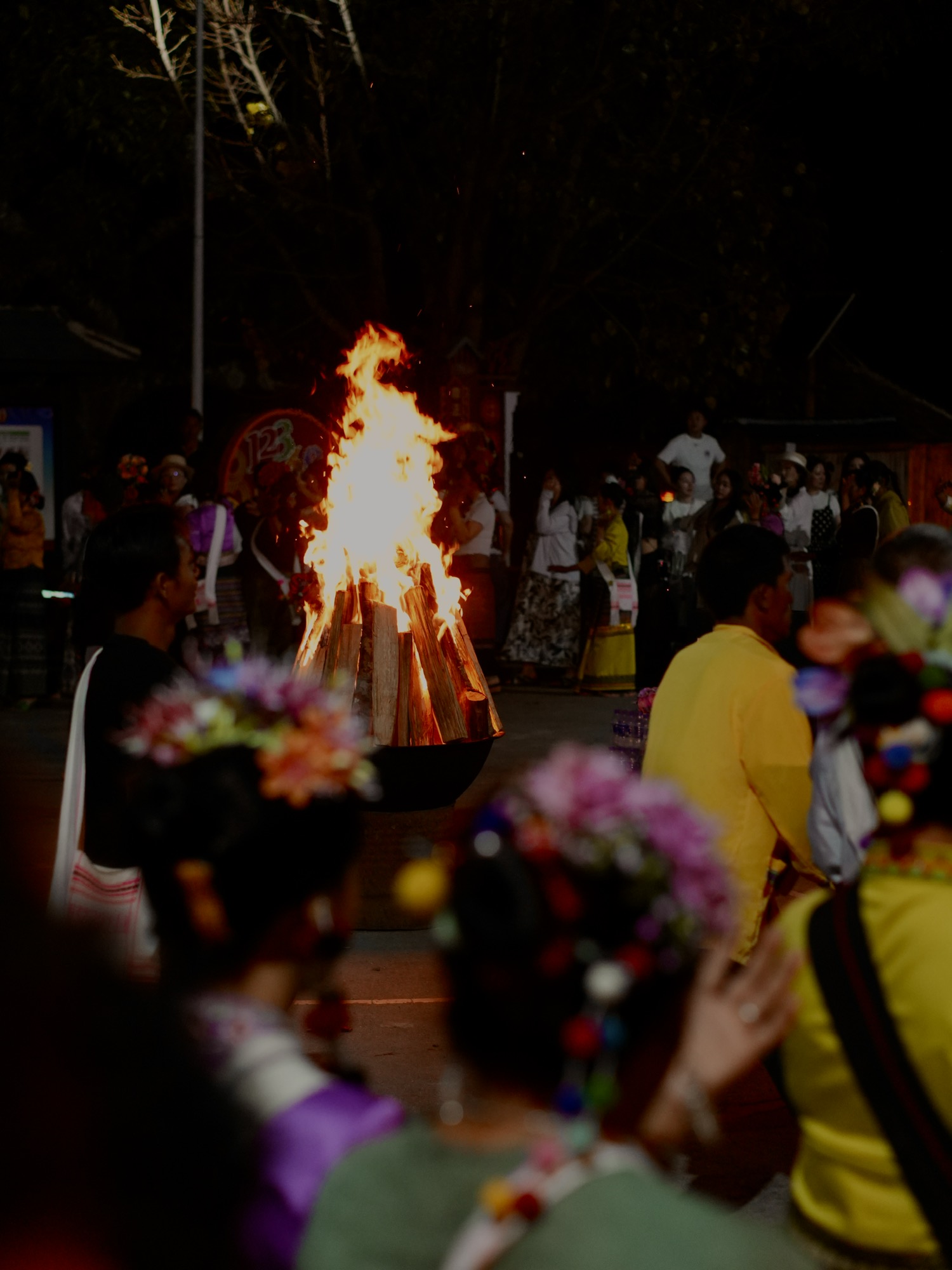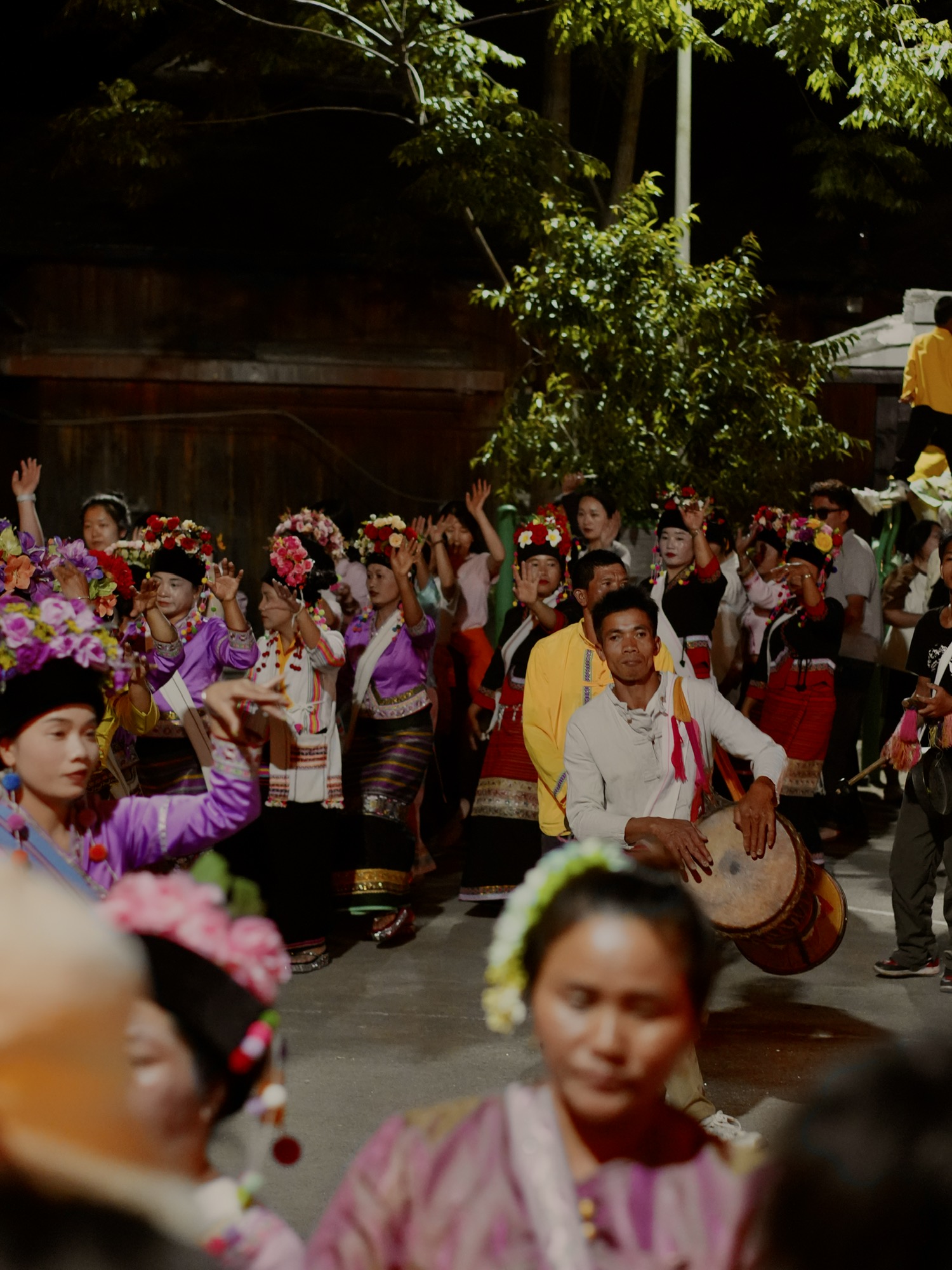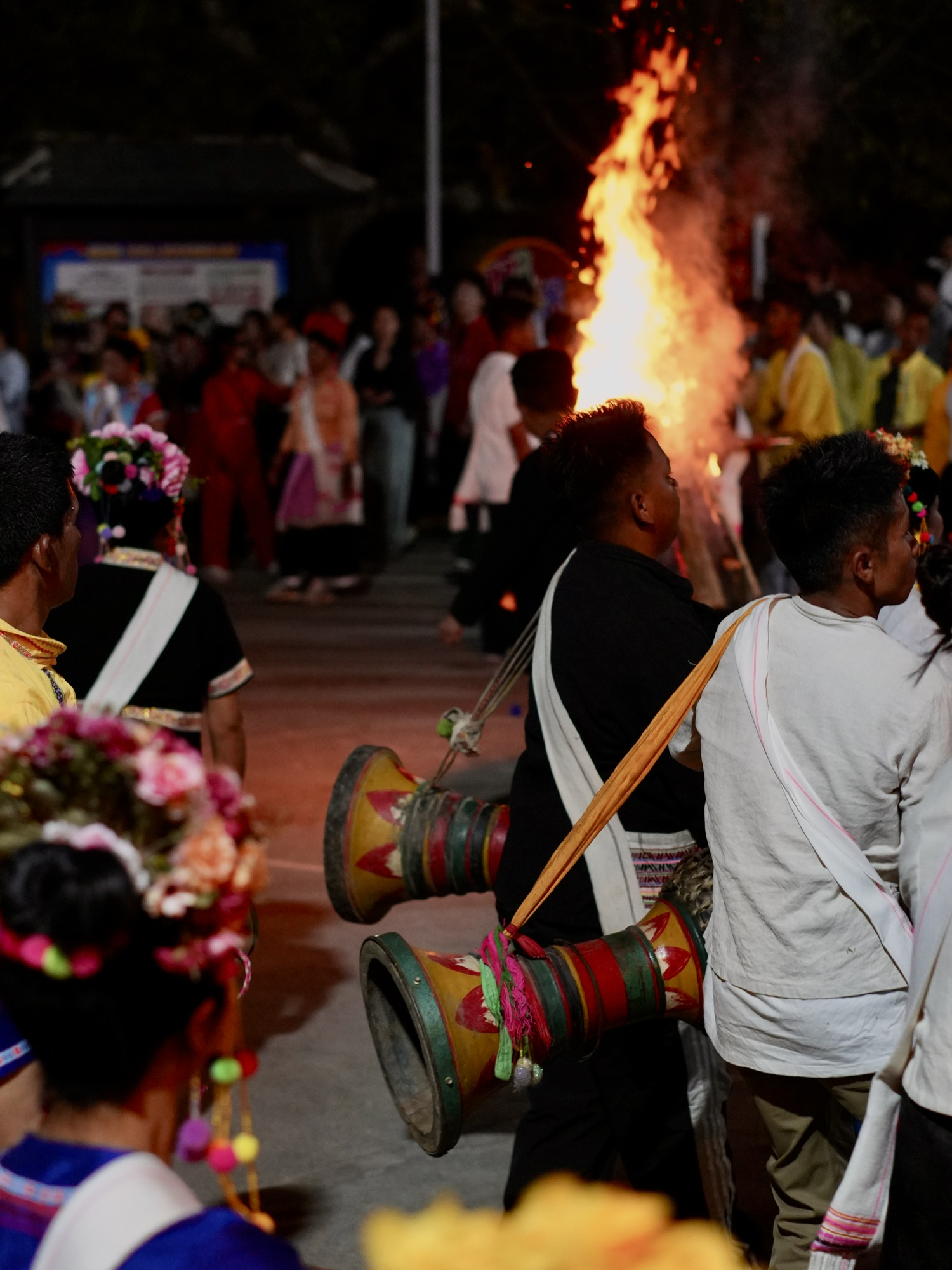 拉祜族、布朗族 齐聚篝火旁载歌载舞。