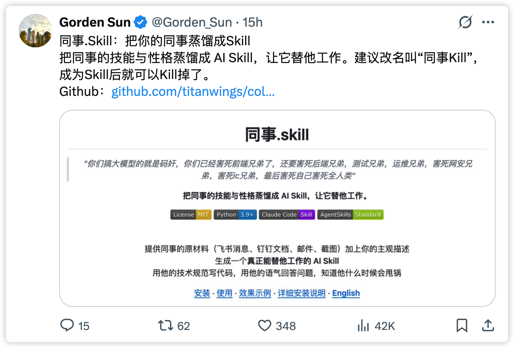 “用他的技术规范写代码,用他的语气回答问题,知道他什么时候会甩锅”