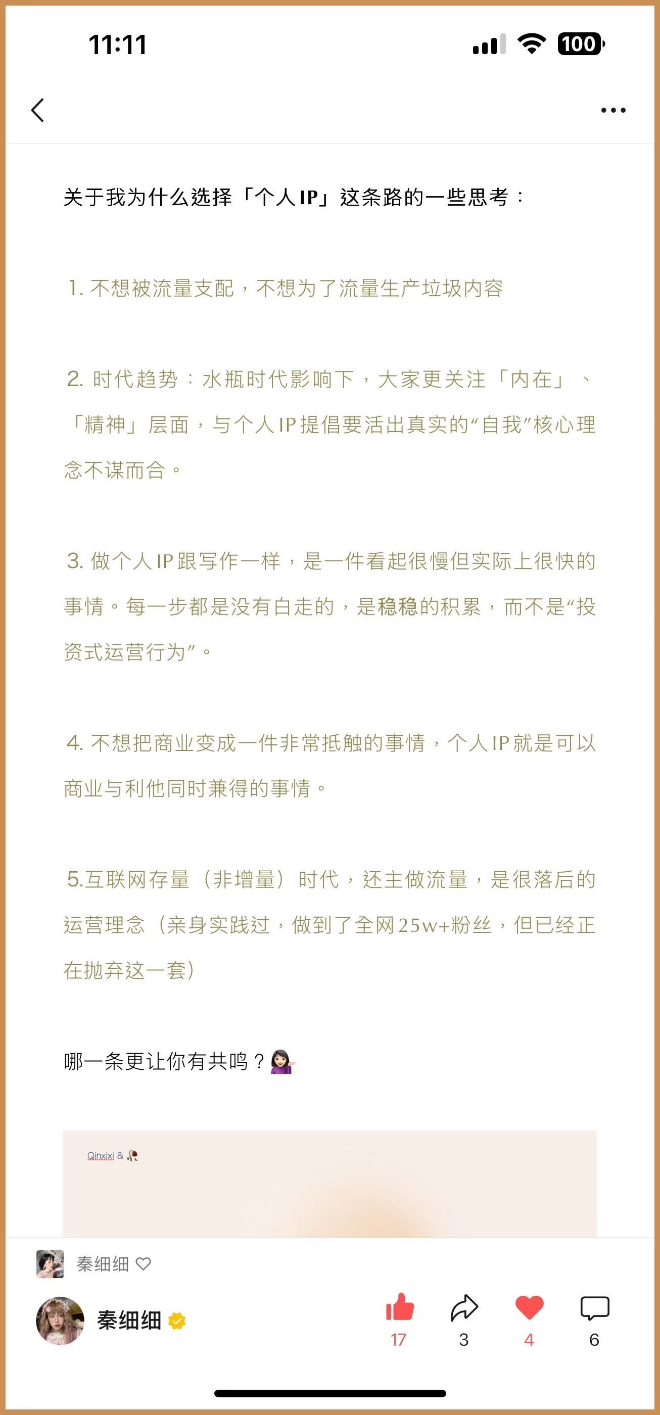 两年前还没离开职场时为自己做的运营规划→“不搞流量那一套”,看起来损失了当下的一些利益,却是一项关乎自己未来是否能够自然生长的自我投资种子。