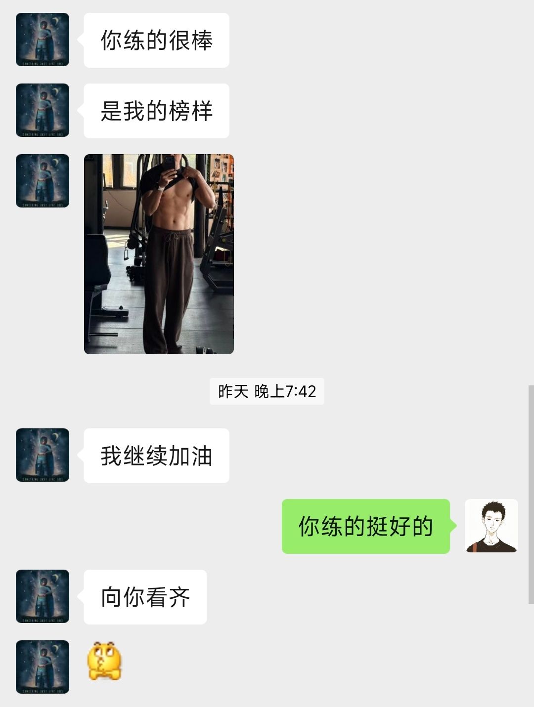 195cm/85kg(缓慢增肌中)