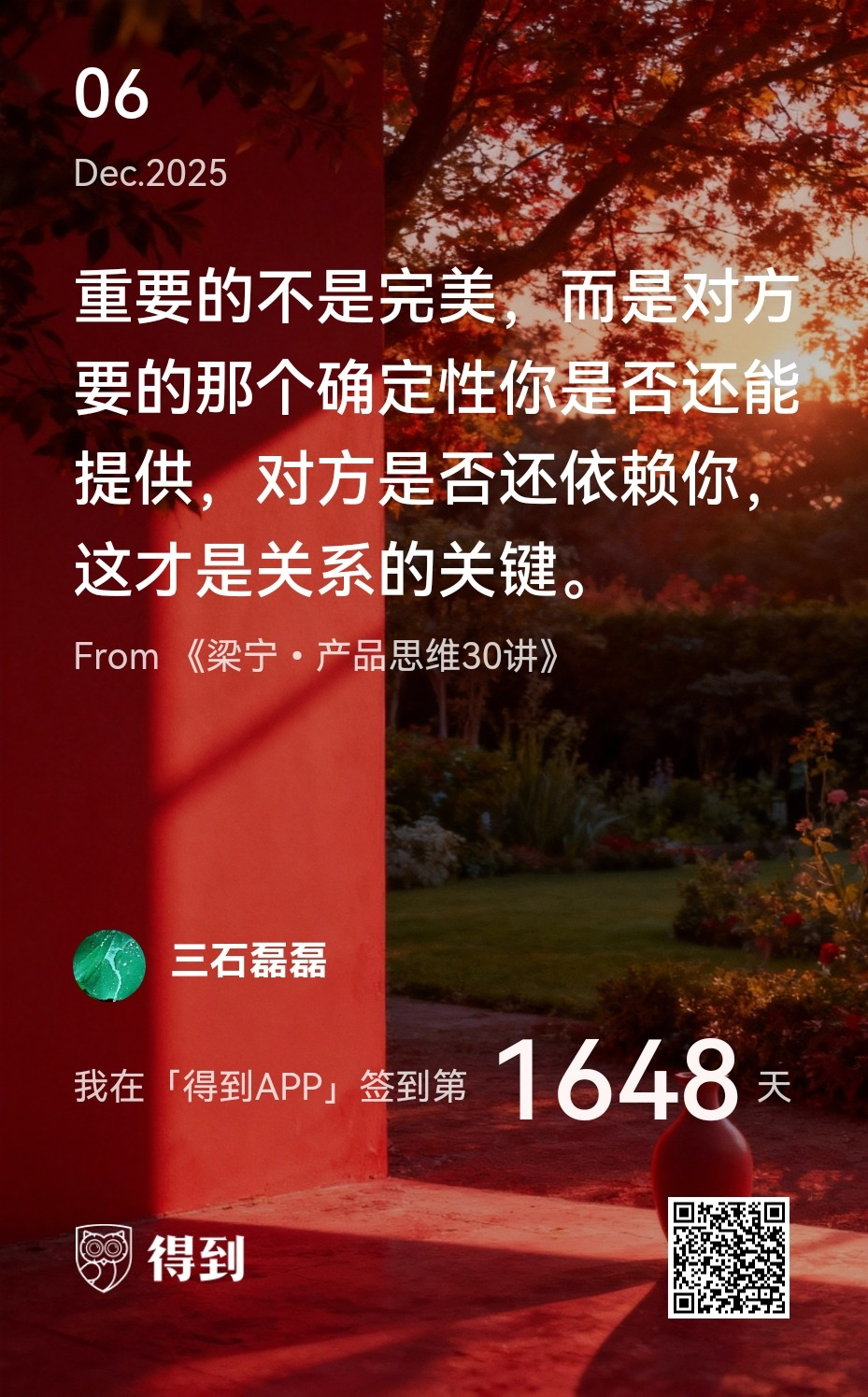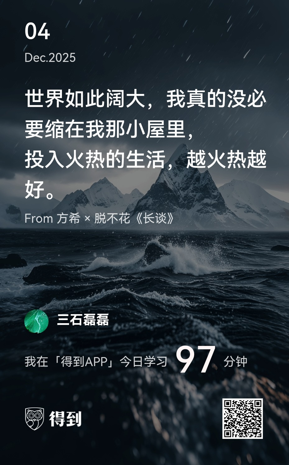 所以,衡量成长只有一个标准,就是你是否拥有了更多自由选择的权利和实力,是否在面对同样的困难时,有了更多路径可以选择。你怎么看待自己的成长?你还在记录自己的成长吗?
