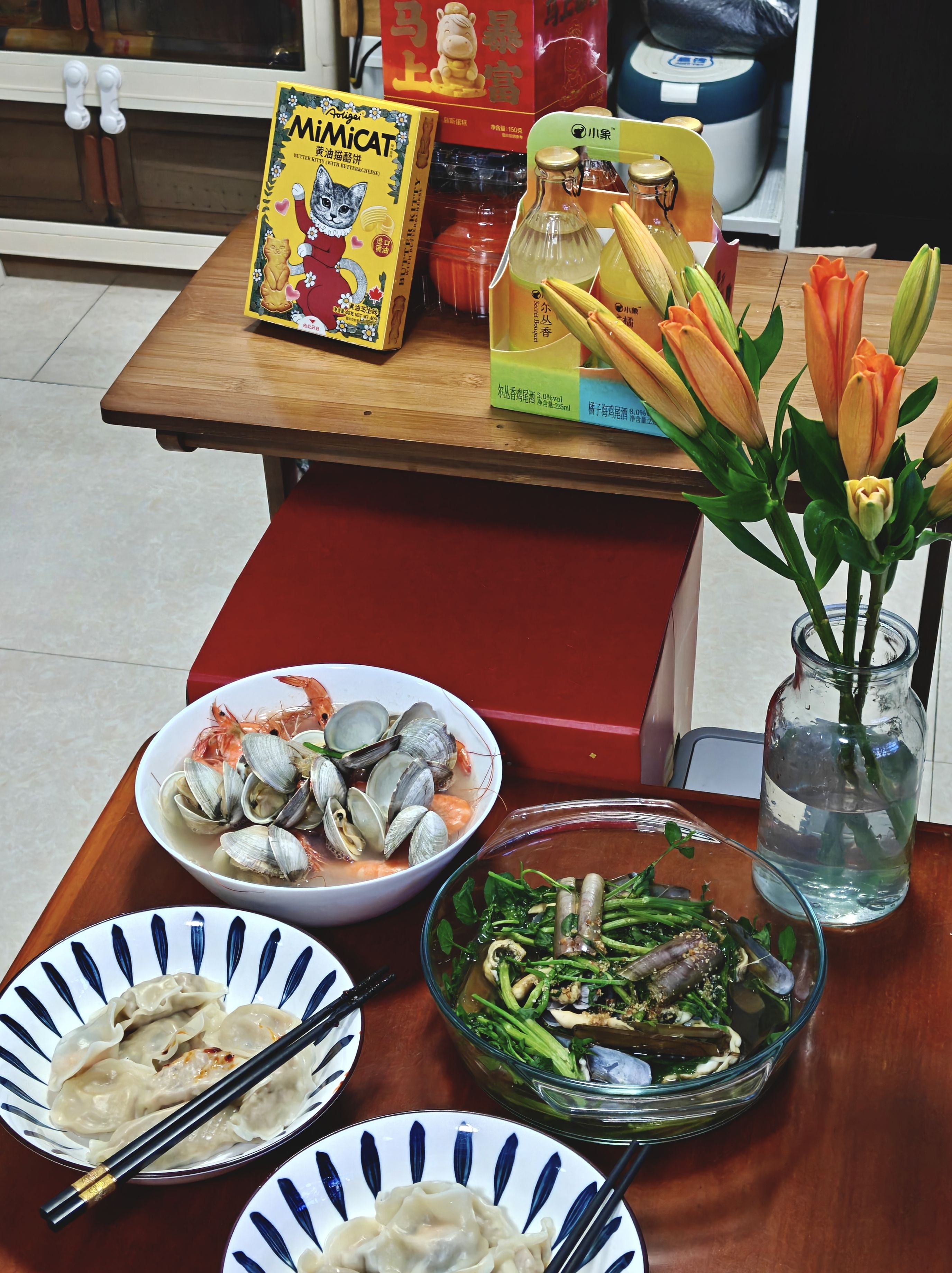 下班回来 25 分钟 极限做了 3 个菜,买了蛋糕跟花花摆饰一下: