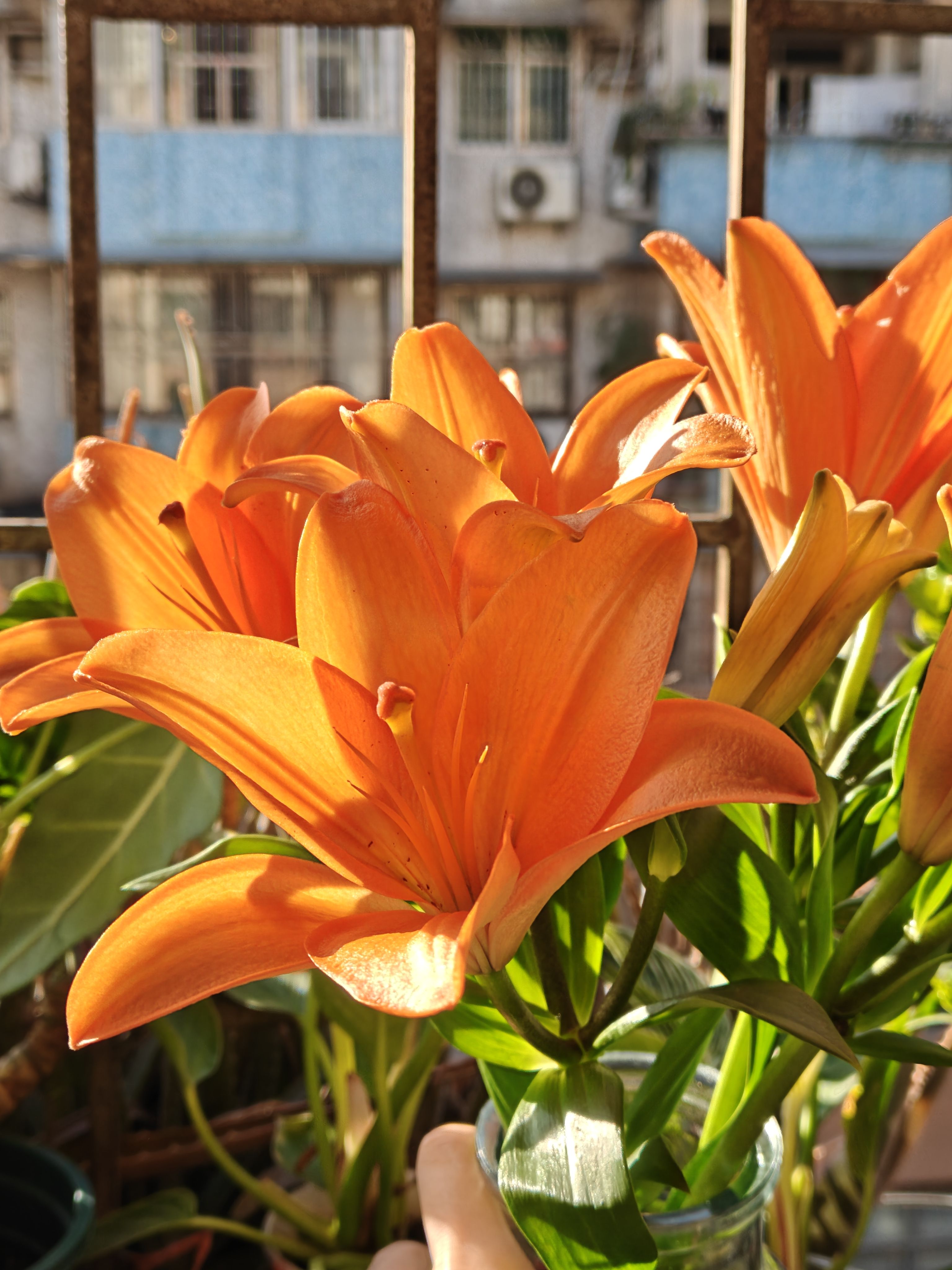 早上橙色百合开了,拔掉花蕊,听说能活得更久(科学养护)!🌼