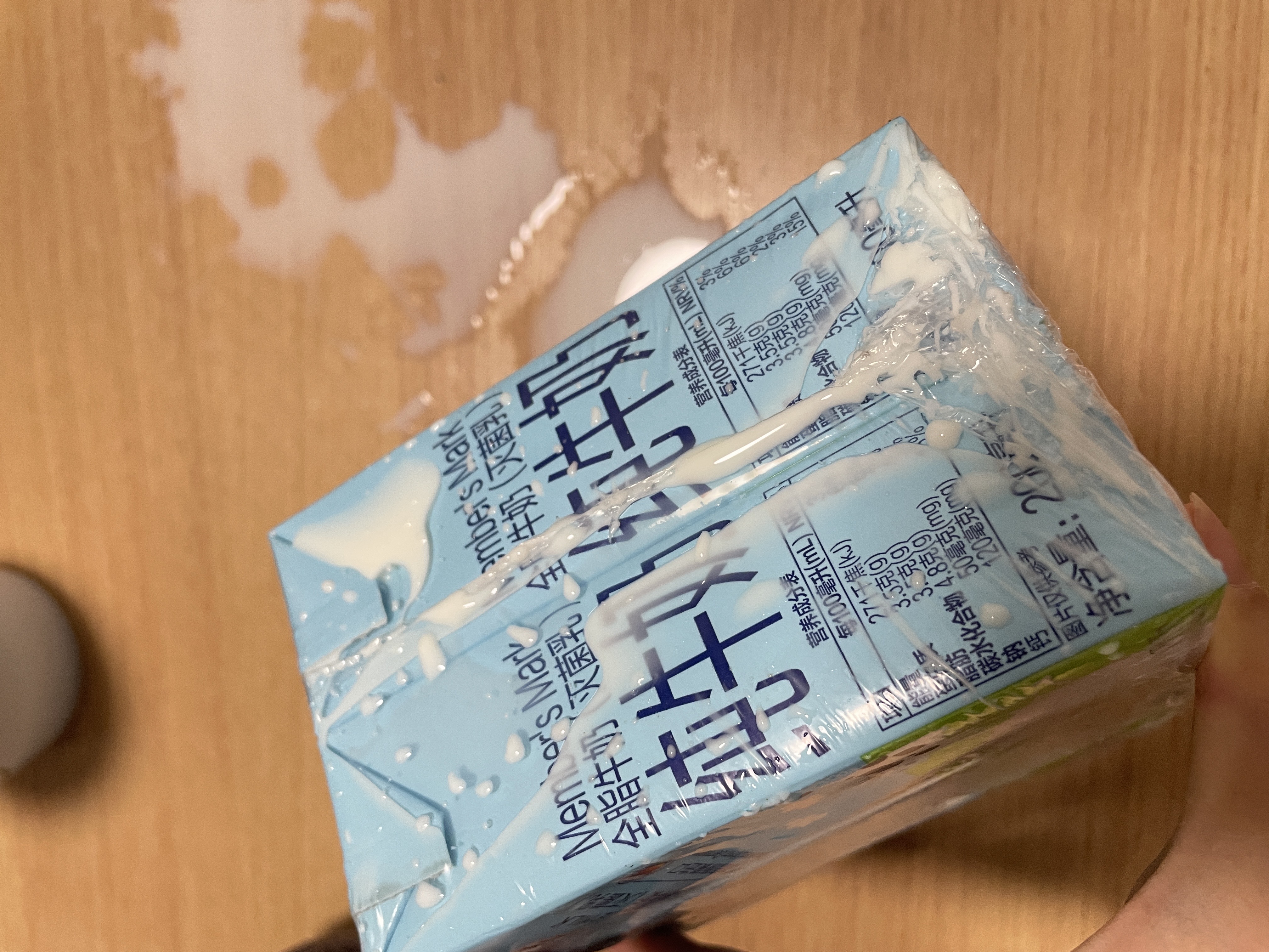 把牛奶盒子咬破
